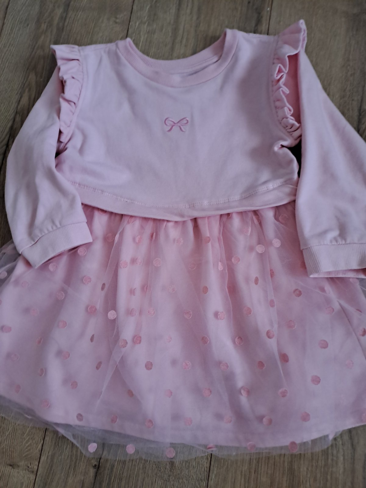 Krásne šaty v top stave.. na bežné nosenie, ale podľa mňa vhodné aj na vianočné fotenie (zlaté trblietavé mašličky). Veľkosť 104. Cena 4€