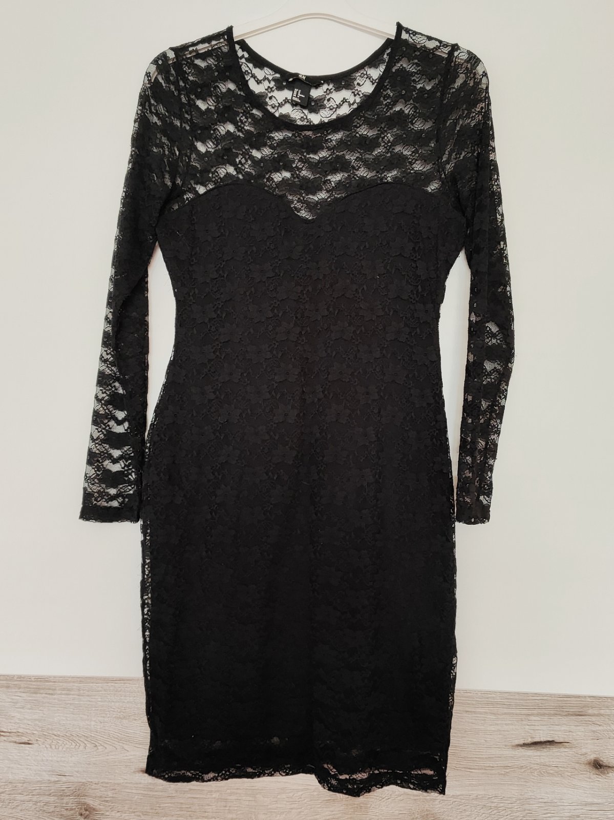 250k. Čierne šaty s bielou čipkou Divided HM, velk. 36 / XS / S, vzadu na zips, nosene velmi malo, nijak neposkodene, znacka Divided HM, 92% polyester, 8% elastan, dlzka 83cm, rukav 57cm z toho cip...