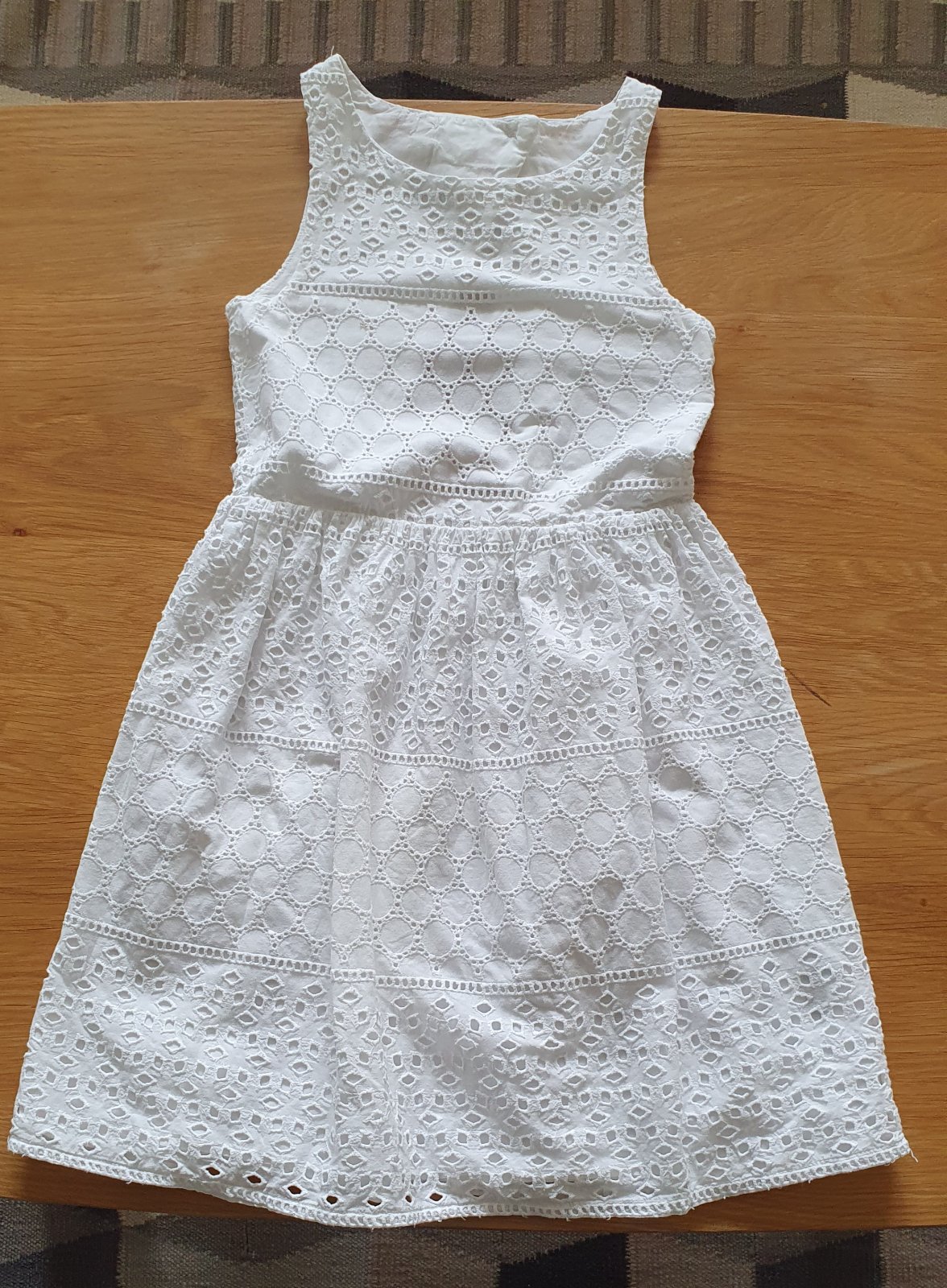 Predám šaty HM veľkost 122. Dĺžka od ramena dole cca 70cm, šírka pod pazuchami cca 31cm.