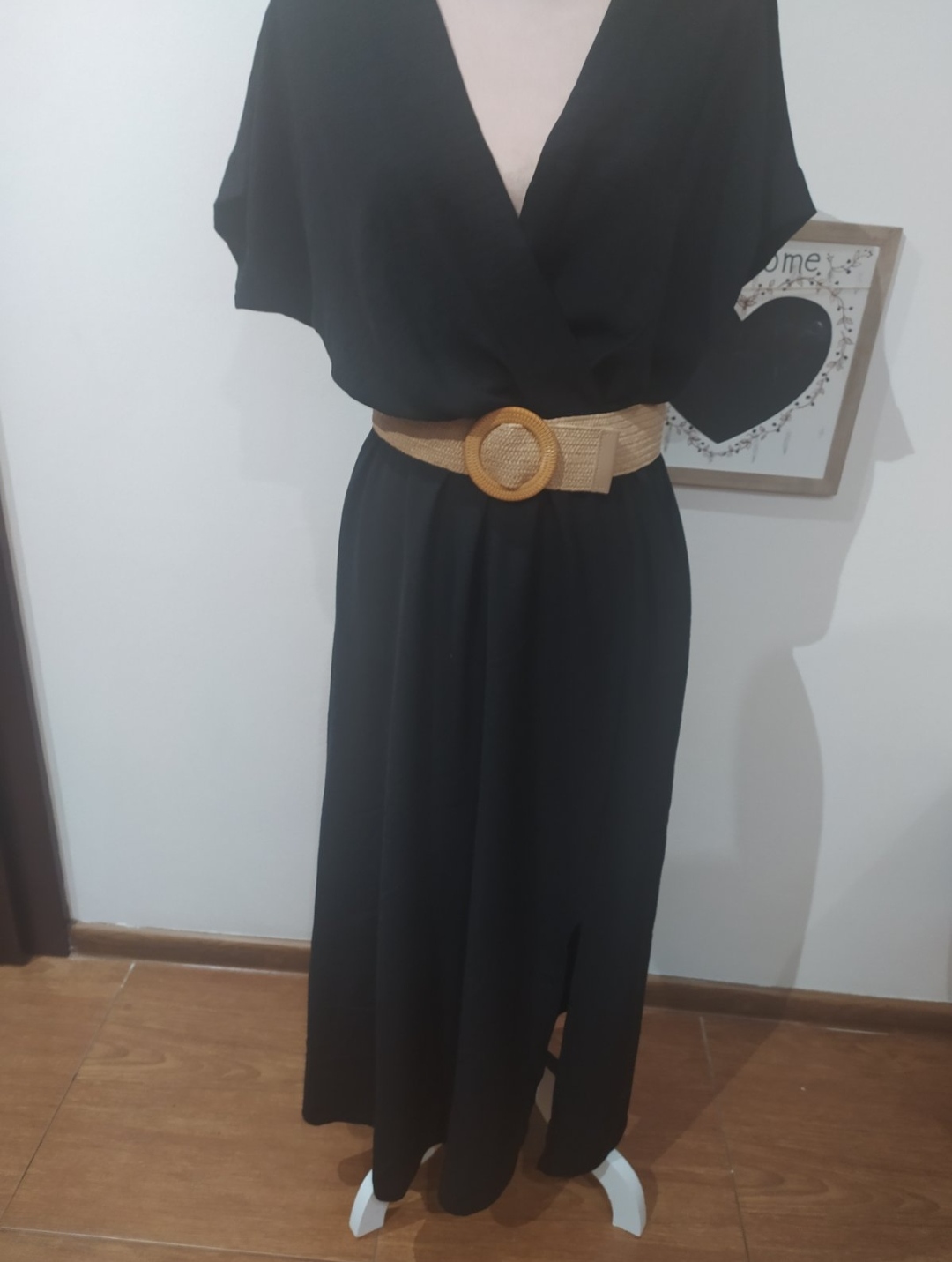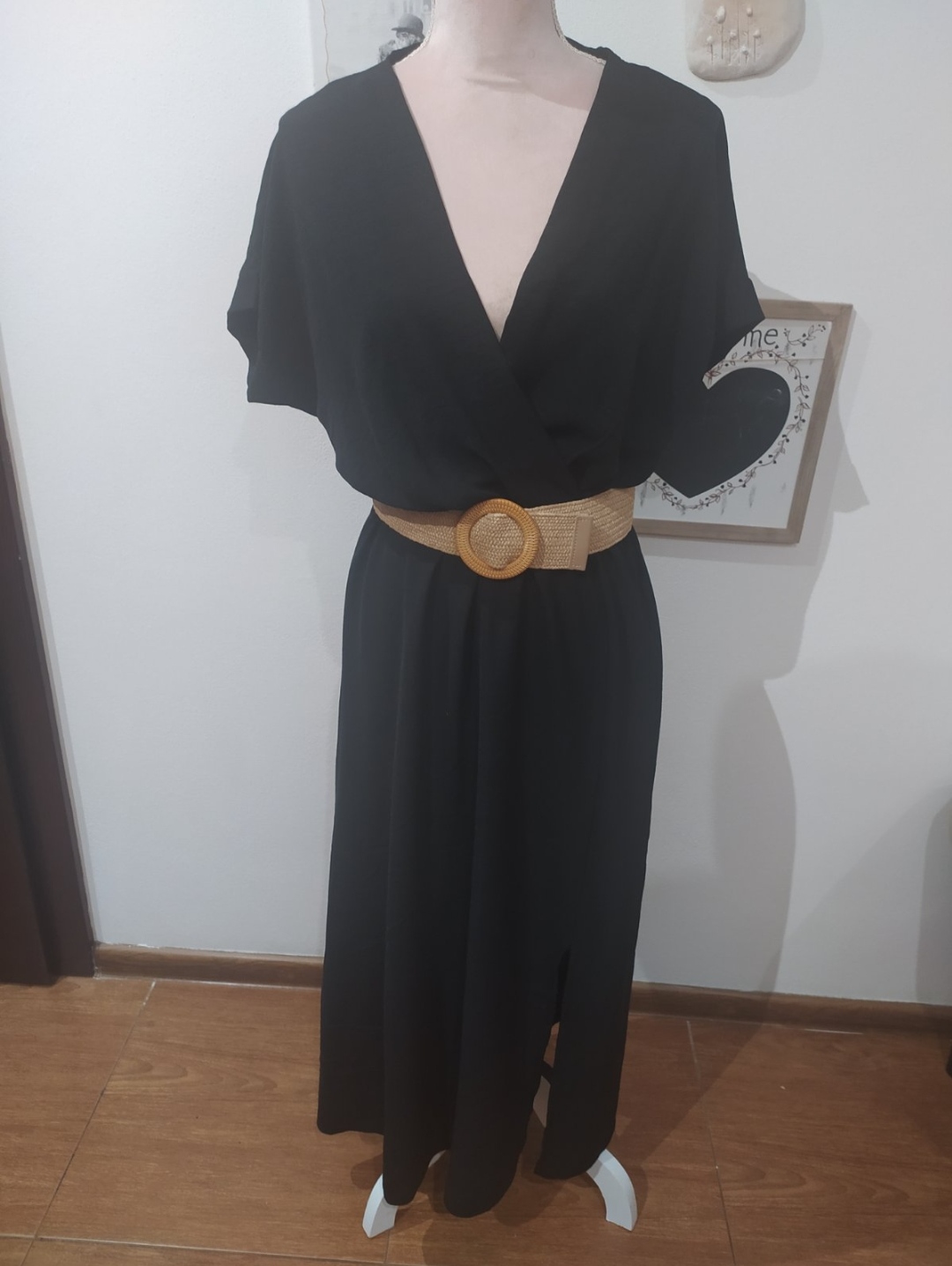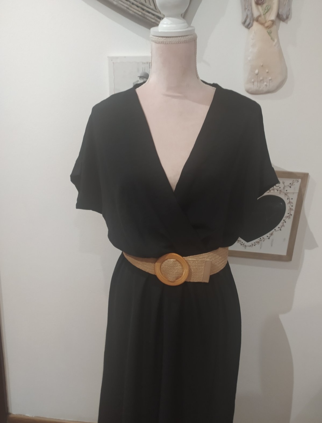 Krásne letné šaty,zavinovacieho vzhľadu.V páse na gumu,vpredu rázporok.Sucastou šiat je aj gumový opasok.Saty sa dajú nosiť na bežné nosíte alebo doplnené doplnkami aj na príležitosť.Vel Uni vhodné pre veľ S-L