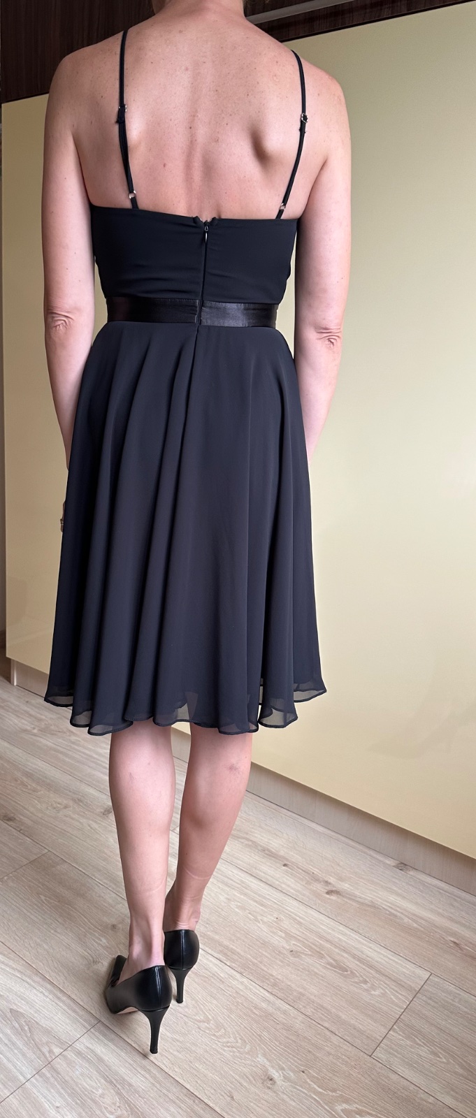 Krásne šaty so všitou podprsenkou, nastaviteľne ramienka, v zadu zips. Krásne sedia na postave. Sú v top stave.