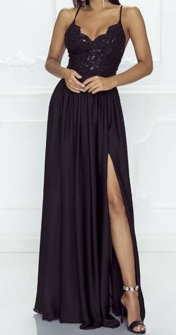 Priliehavý vrch zdobený krajkou a flitrami a dlhá padavá sukňa z ľahkého saténu s rozparkom dotvárajú tieto šaty k absolútnej dokonalosti. Budú vaše na ples, svadbu alebo oslavu? Vieme zaručiť jediné, že budete za hviezdu! Zapnete ich zadným zipsom.