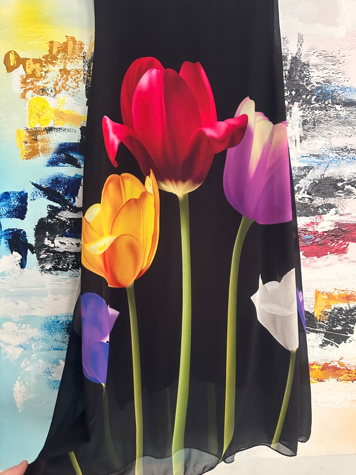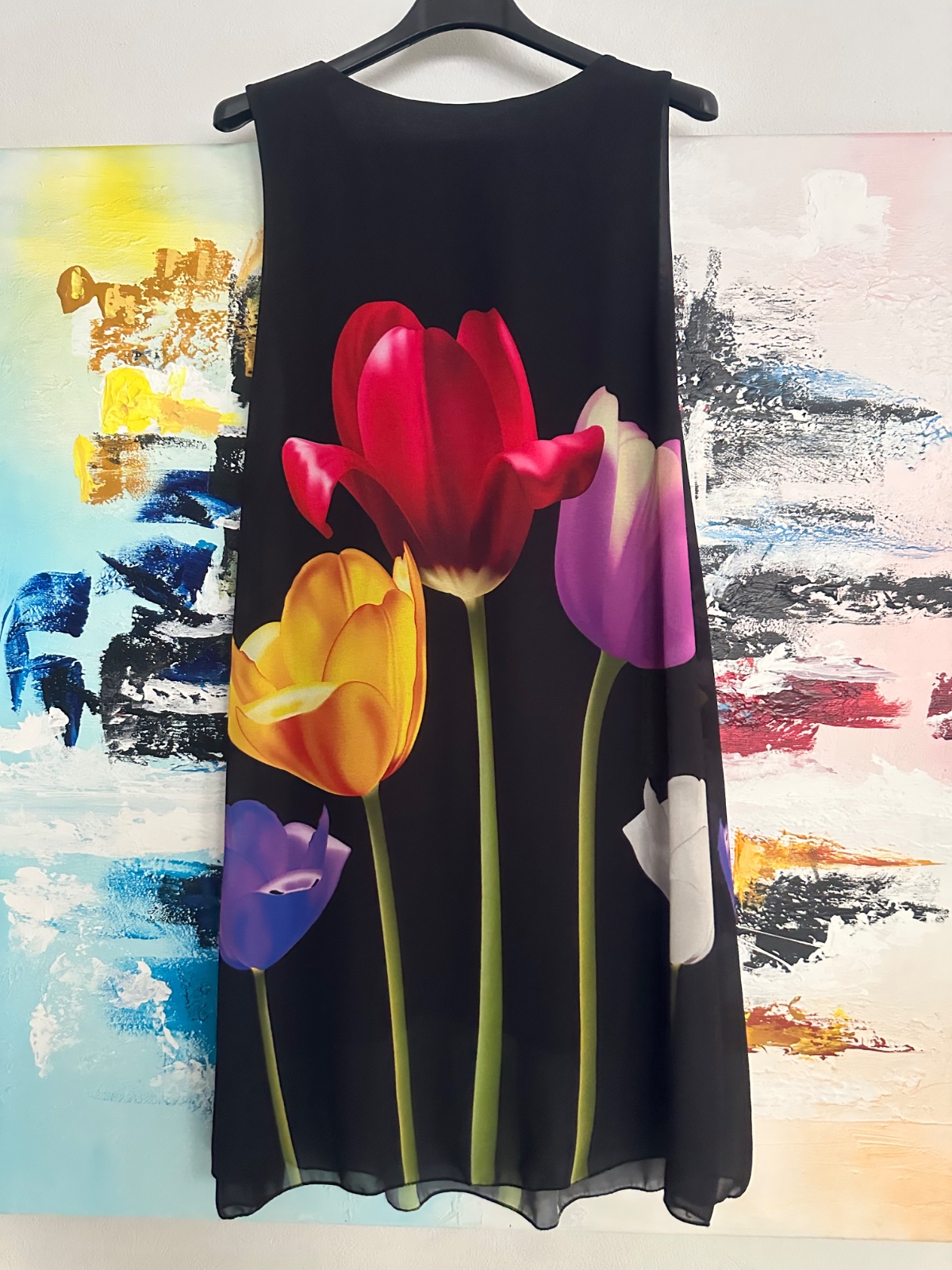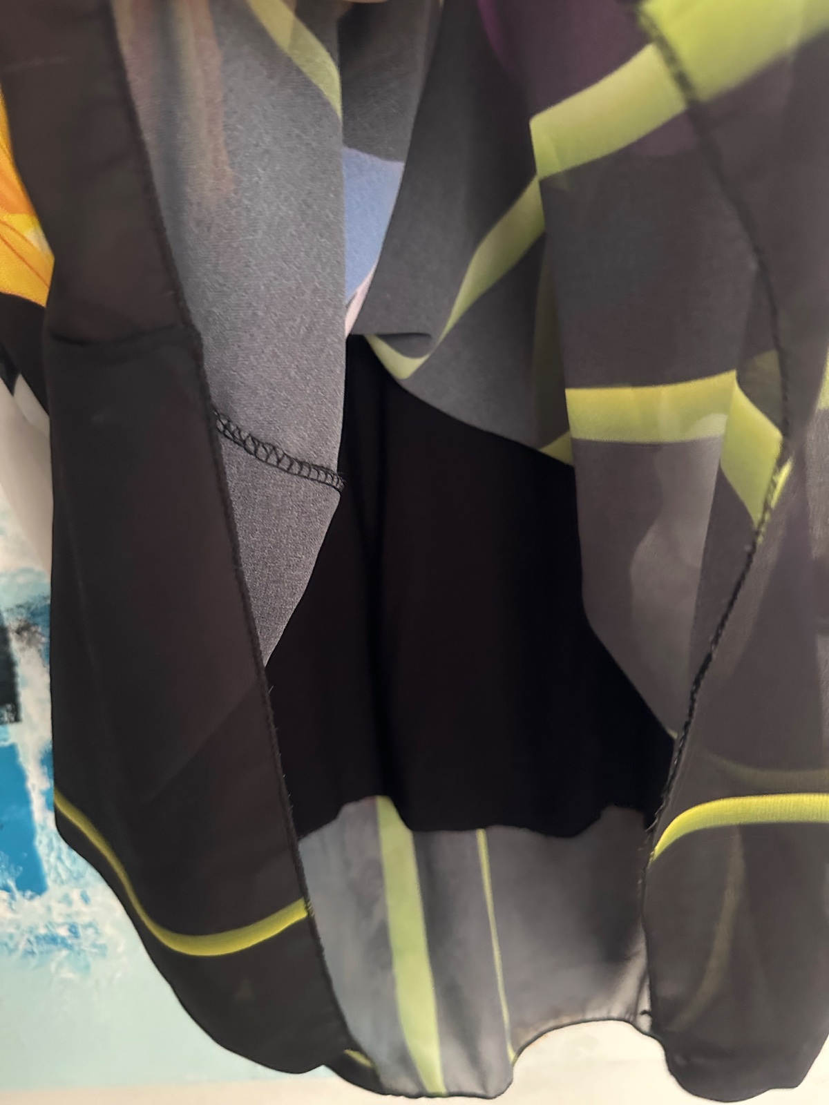 Asymetrické letné šaty, vpredu kratšie a vzadu sú dlhšie. Písaná veľkosť L, no sú menšie, skôr M.