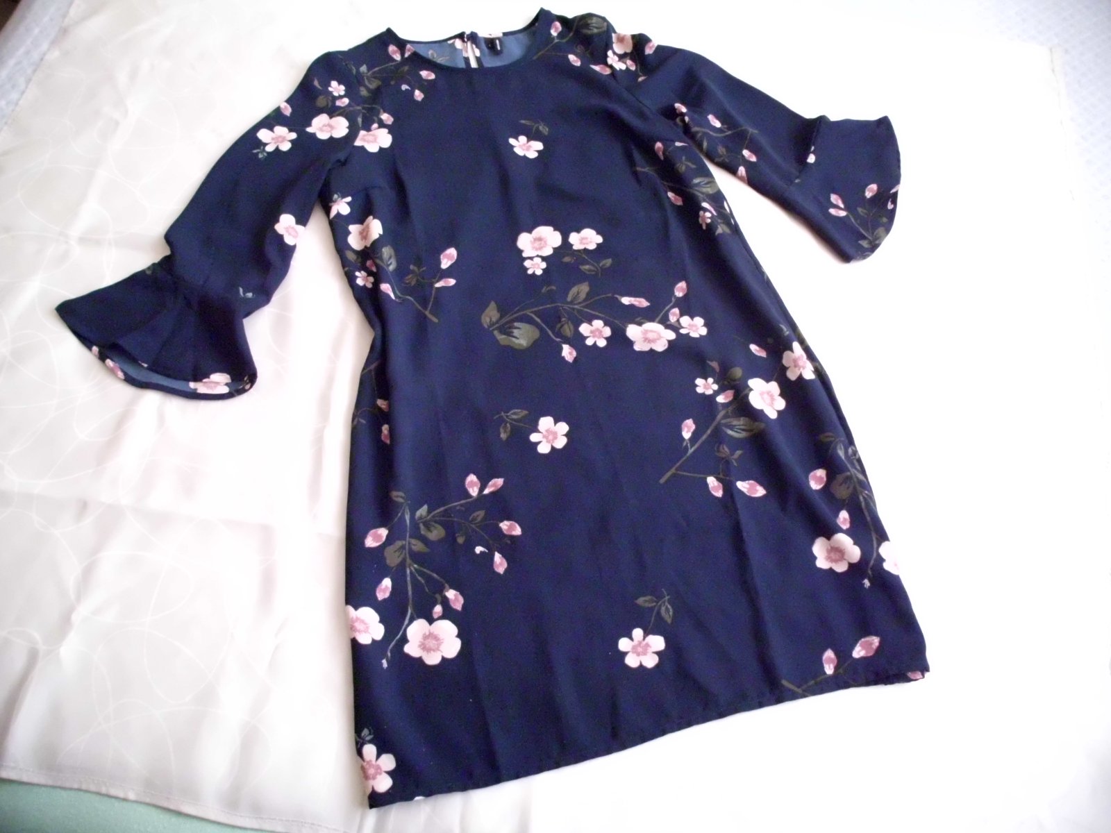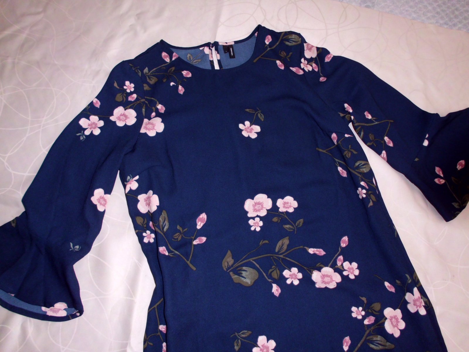 Predám šaty Vero Moda v .L aj na M, šírka meraná pod rukávmi 51,5 cm , dĺžka 95 cm zadný diel, rukáv 51 cm od pleca, vhodné na rôzne príležitosti, príjemný materiál, tmavomodrá farba + ružovo olivové kvety, 2x oblečené, top 100% stav