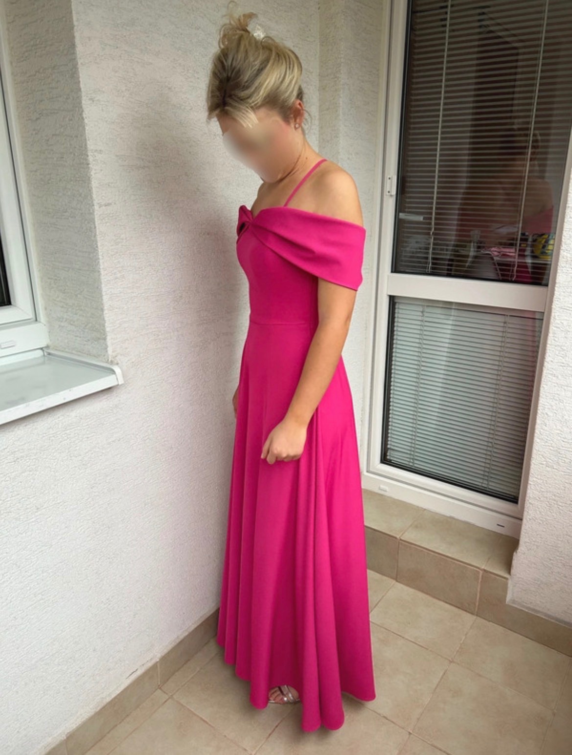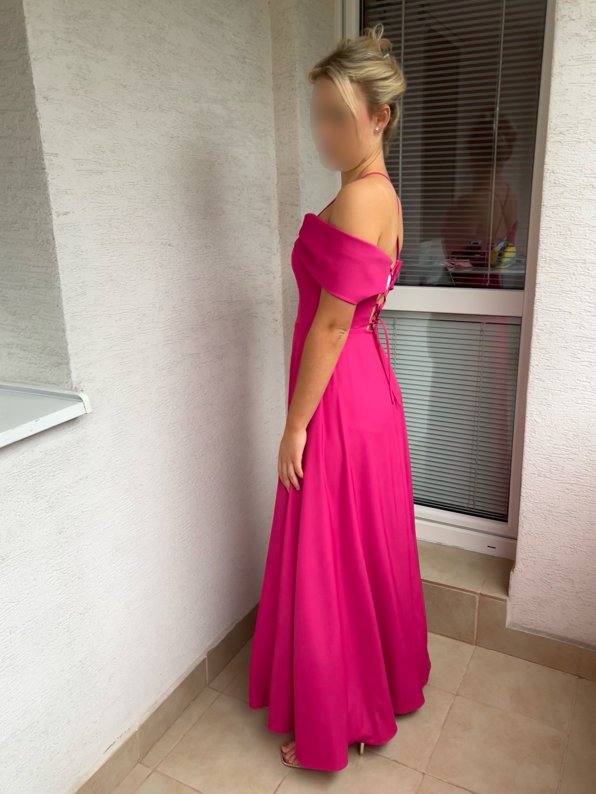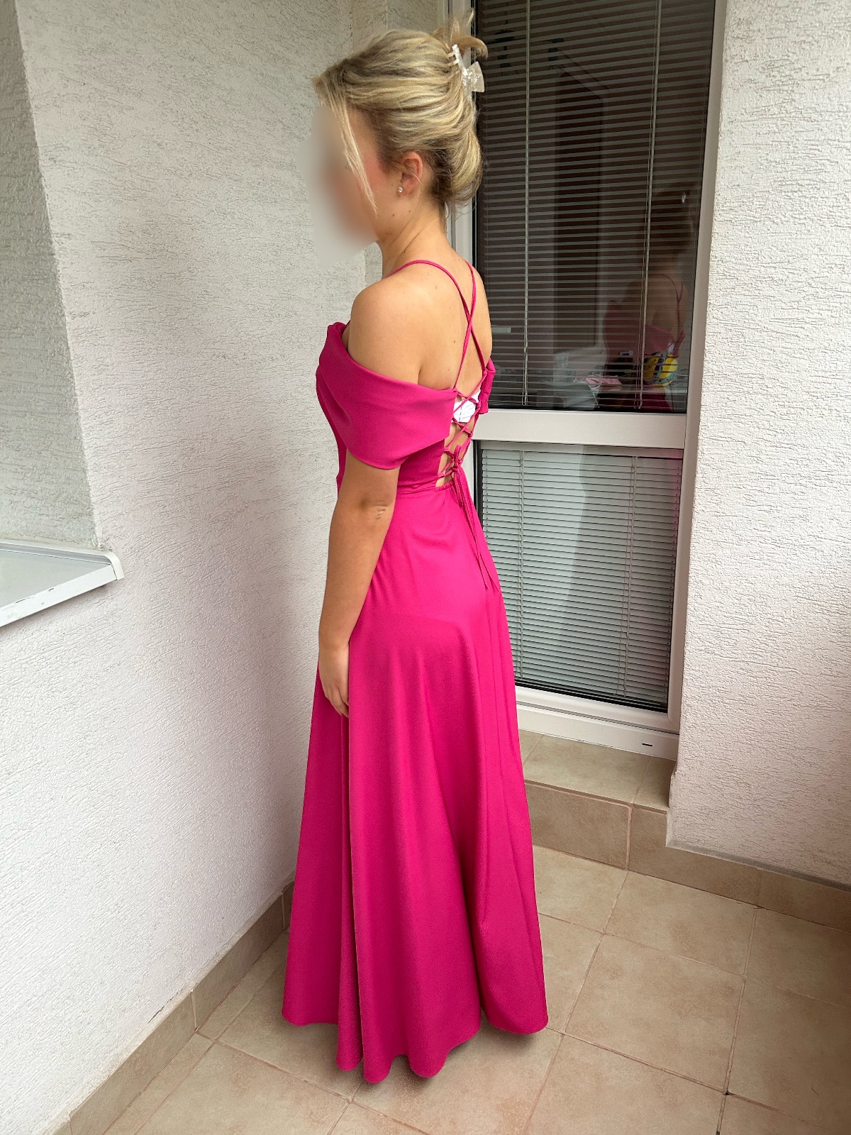 Nádherné sýtostaroružové spoločenské šaty vhodné na stužkovú, venčekový tanec, svadbu, ples, výročie alebo oslavu. Šaty sú precízne spracované, bohato zdobené aplikáciou ružových a strieborných fl...