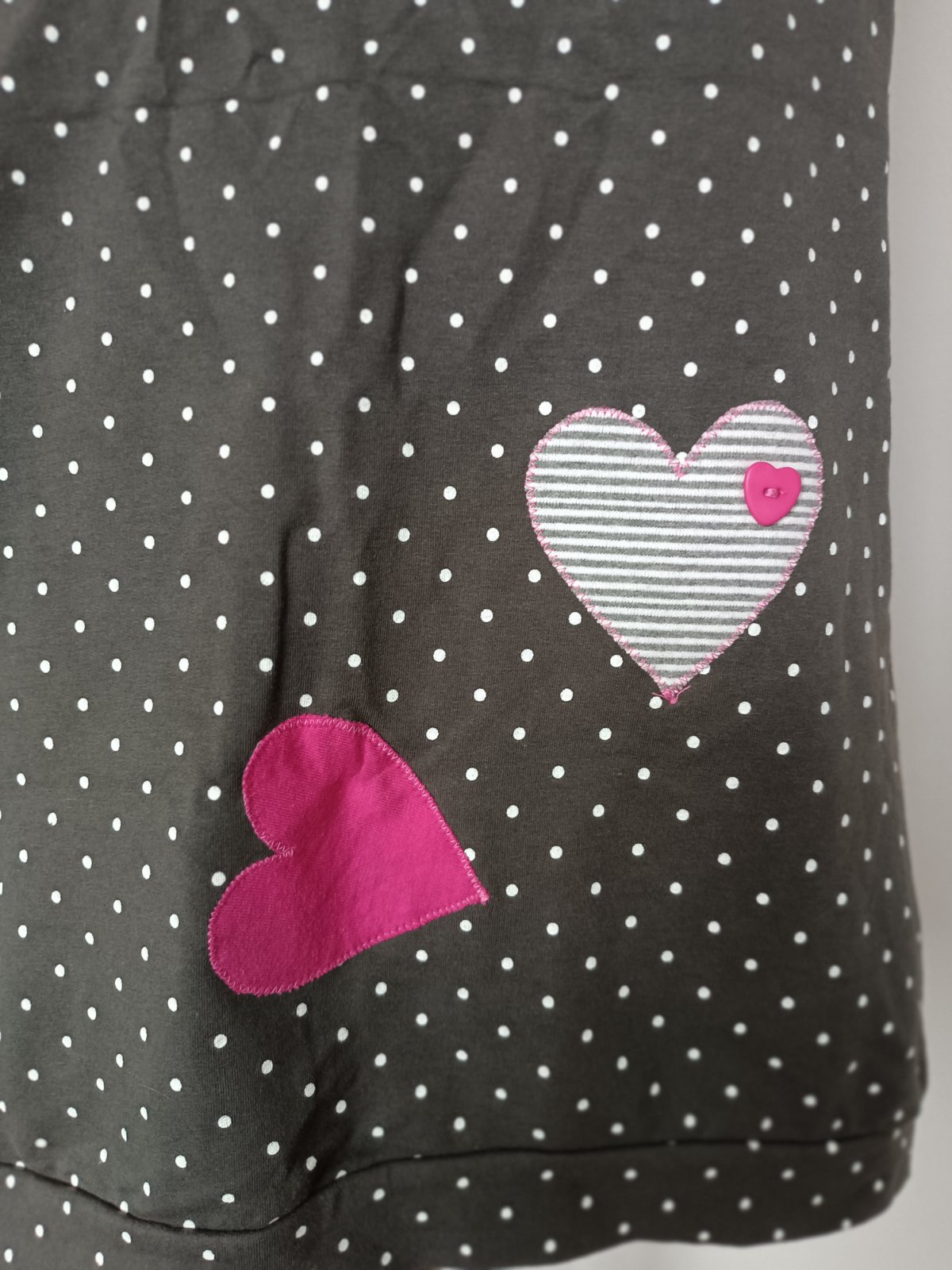 Lahucke jerseyove tricko-satky. Daju sa ponosit chvilku aj ako dlhsie tricko. Bez poskodeni, bez flakov. Aplikacia nanuk z flitrov, premienaci obrazok.