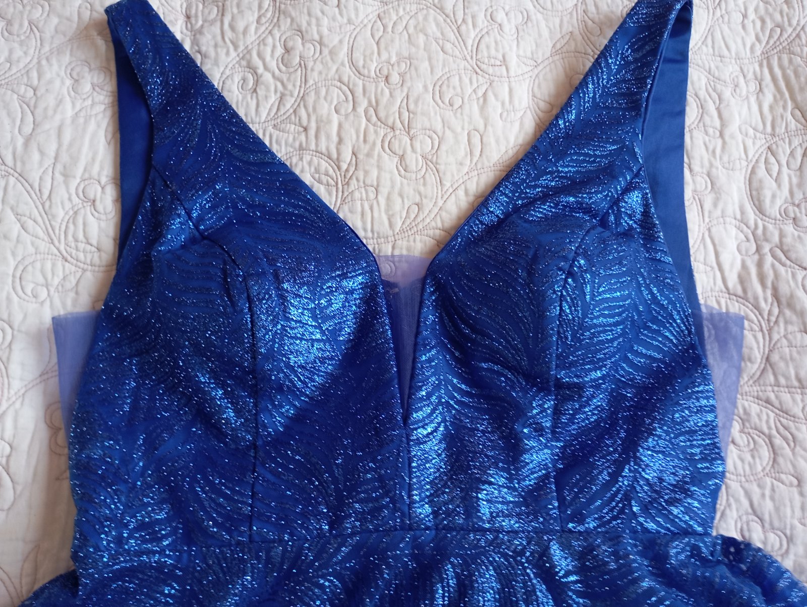 Predám spoločenské šaty kráľovský modré, trblietavé, zn.Dioa, v.XL (vhodné aj pre L). Dĺžka šiat je vhodná pre výšku 170cm + podpätky.