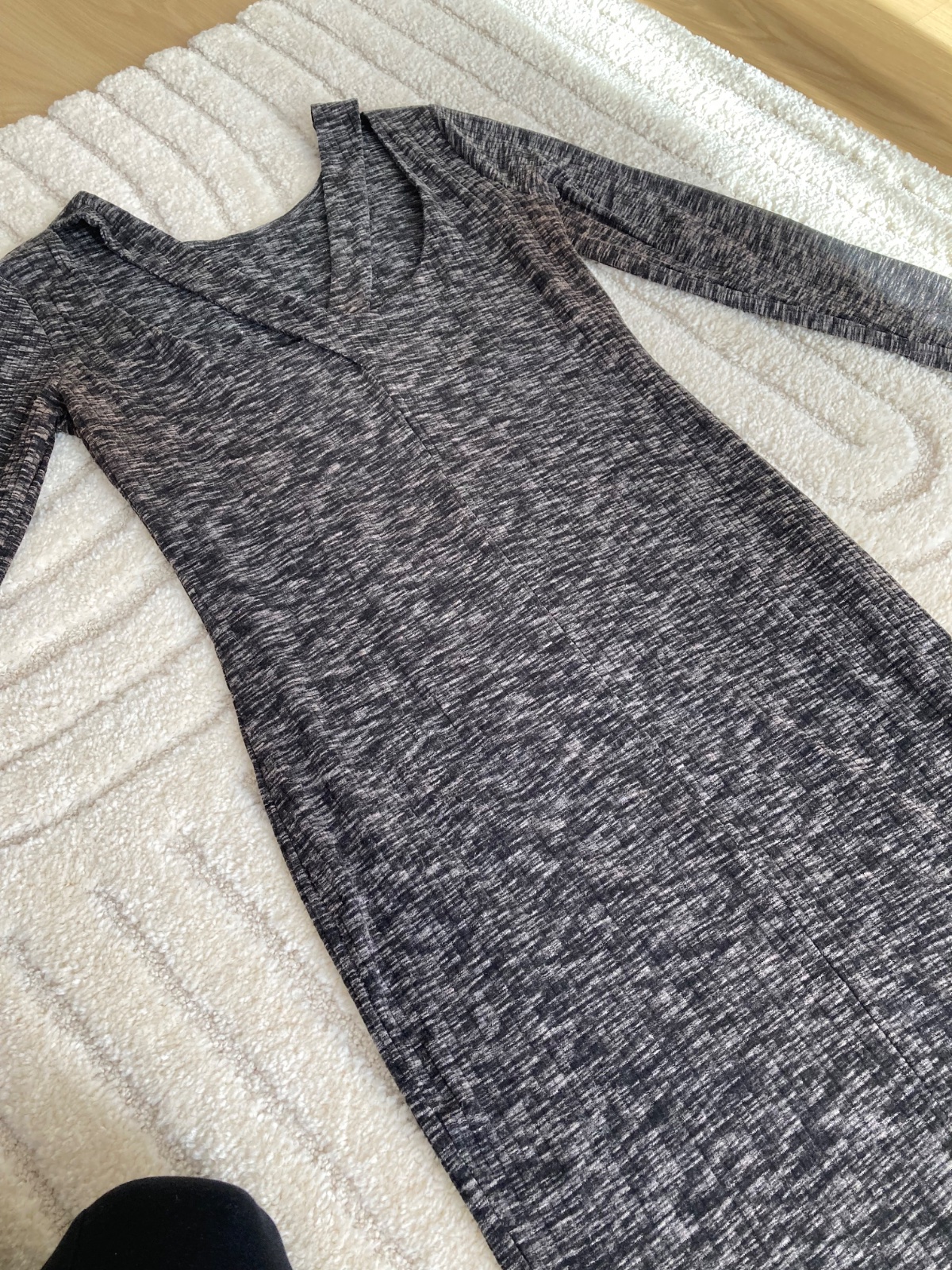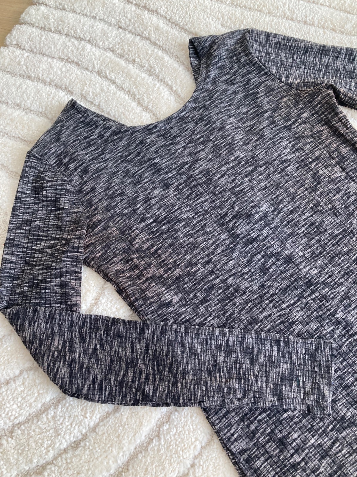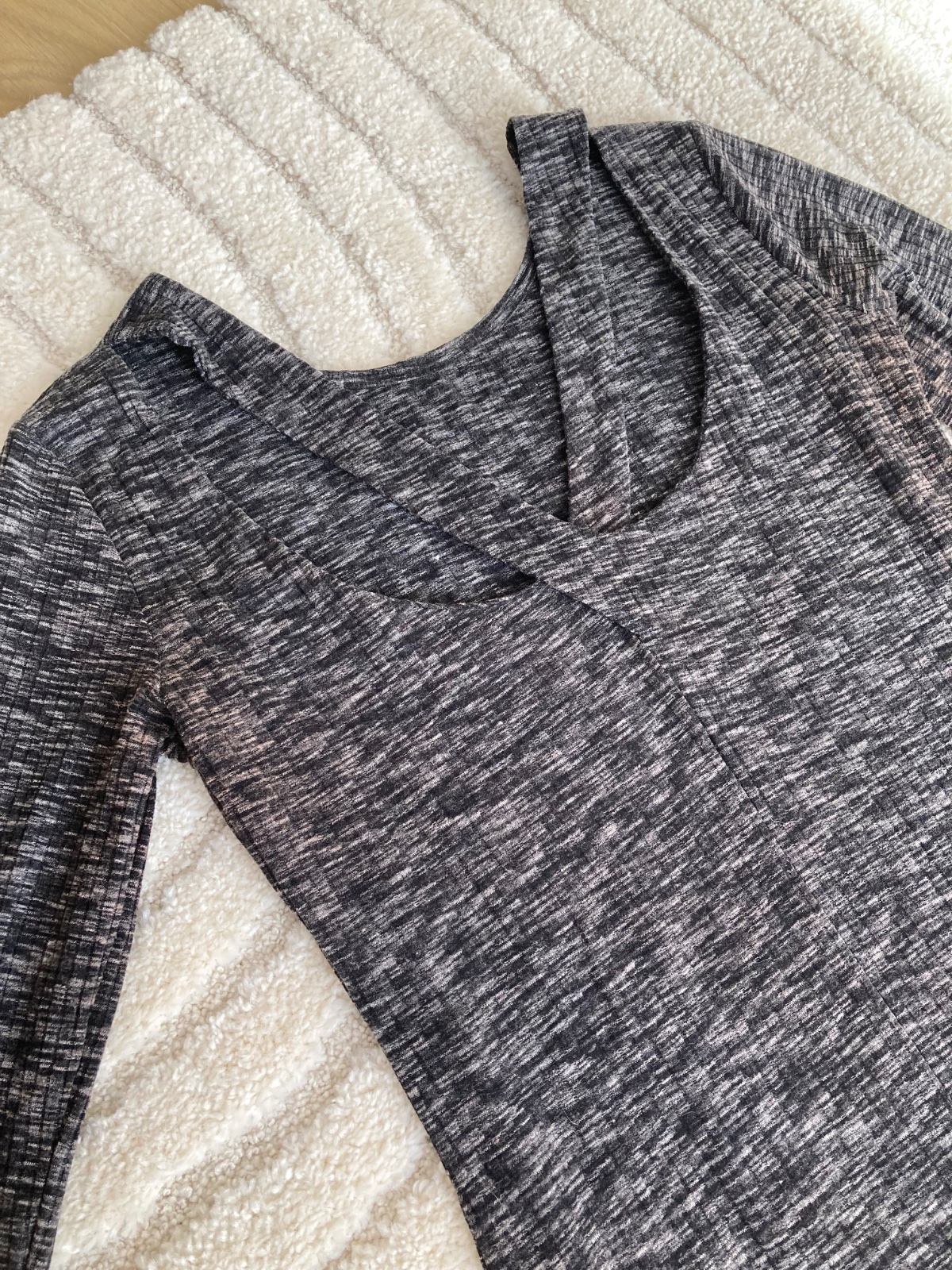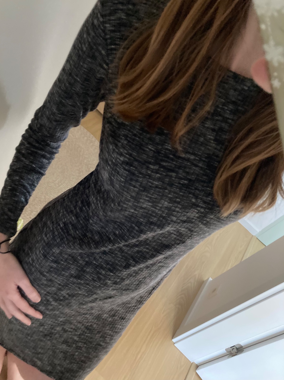 saty z rebrovaneho materialu na chrbte zaujimavy vzor na lopatkach, material lahky jemny dobre sa nosia, po porode uz nevynosim