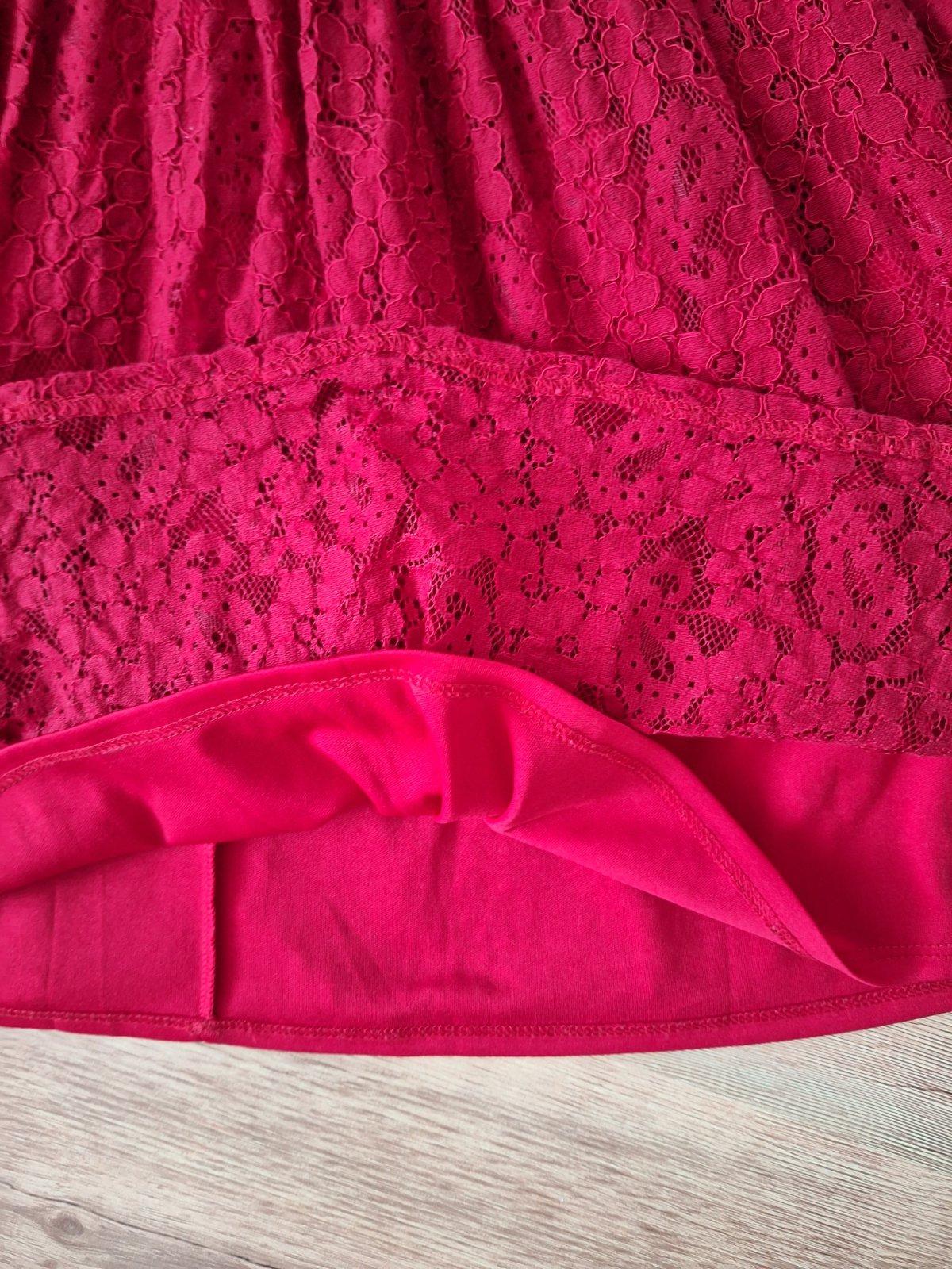 TOP stav. Šatičky sú nádherné. Veľmi krásne sedia na postave, sú podšité. Farba je vínová červená, nie ako na foto.