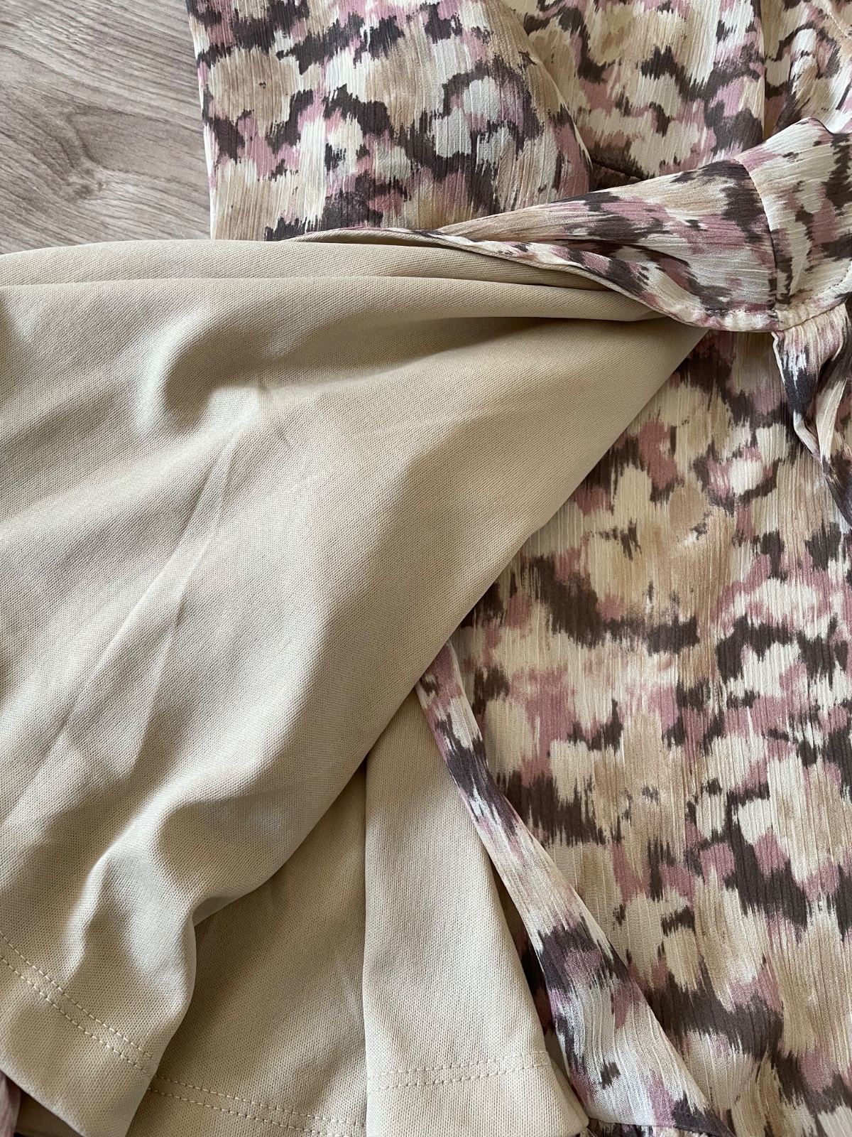 Kvietkované šatičky z ľahkého šifónu, nariasená suknička aj driek, podšité (okrem rukávov). 1x oblečené, dĺžka 86cm, rukáv 60cm, veľkosť S