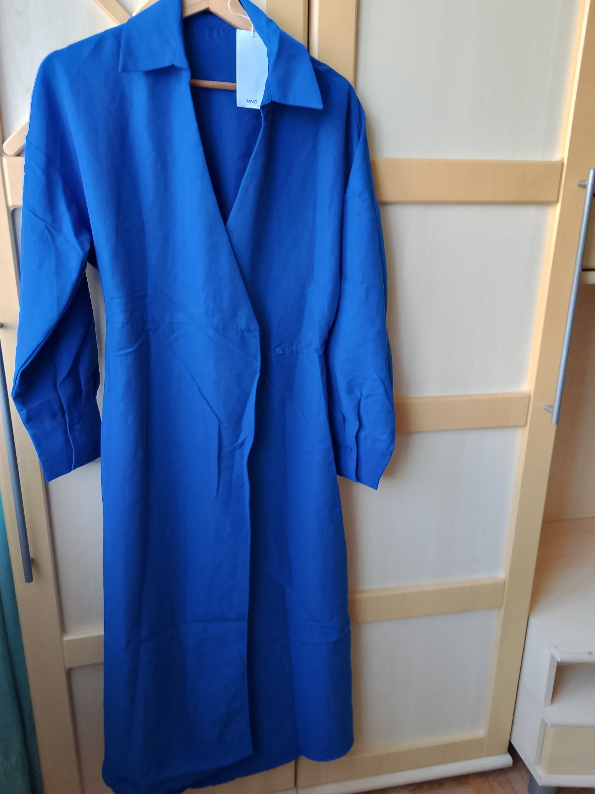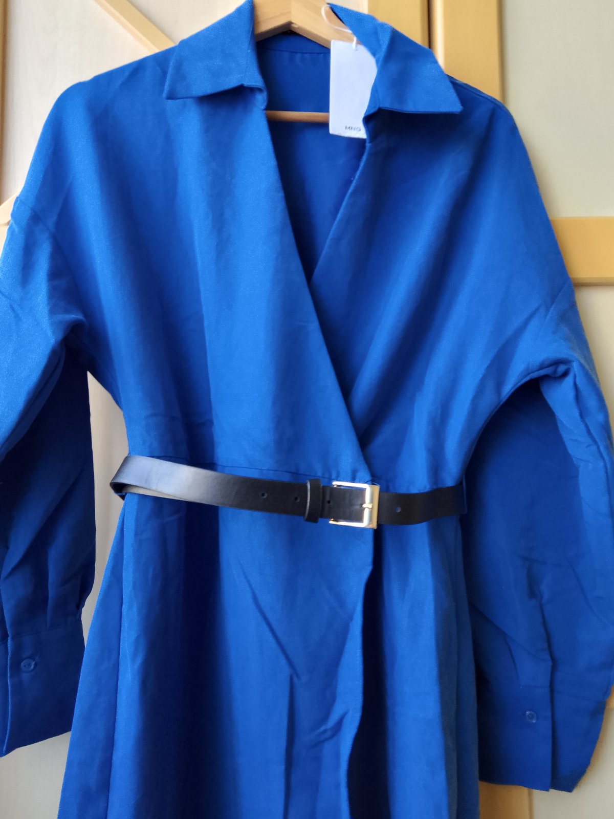 Dámske šaty zn.Mango na preklop, zaväzovacie s opaskom, eľkosť 36, kráľovská modrá, môžu sa nosiť s opaskom aj bez, klasický elegantný strih, material: 67% lyocel, 23% polyester, pôvodna cena 49,90