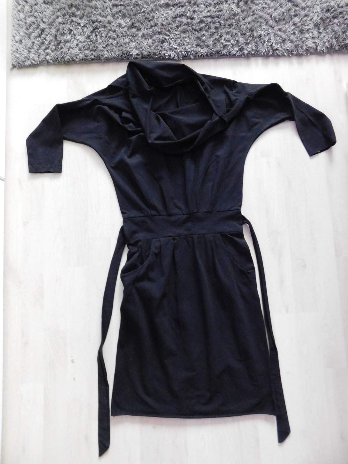 Sexi minišaty, pevnejší materiál v kombinácií s koženkou, oblečené raz. Dĺžka 81,5 cm, šírka pod pazuchami 43 cm.
