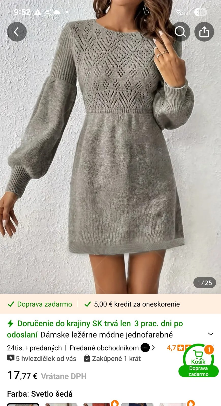 Teplé šaty v.S, oblečené asi 2x, ale sú veľké. Sú krásne a kvalitné. + poštovné