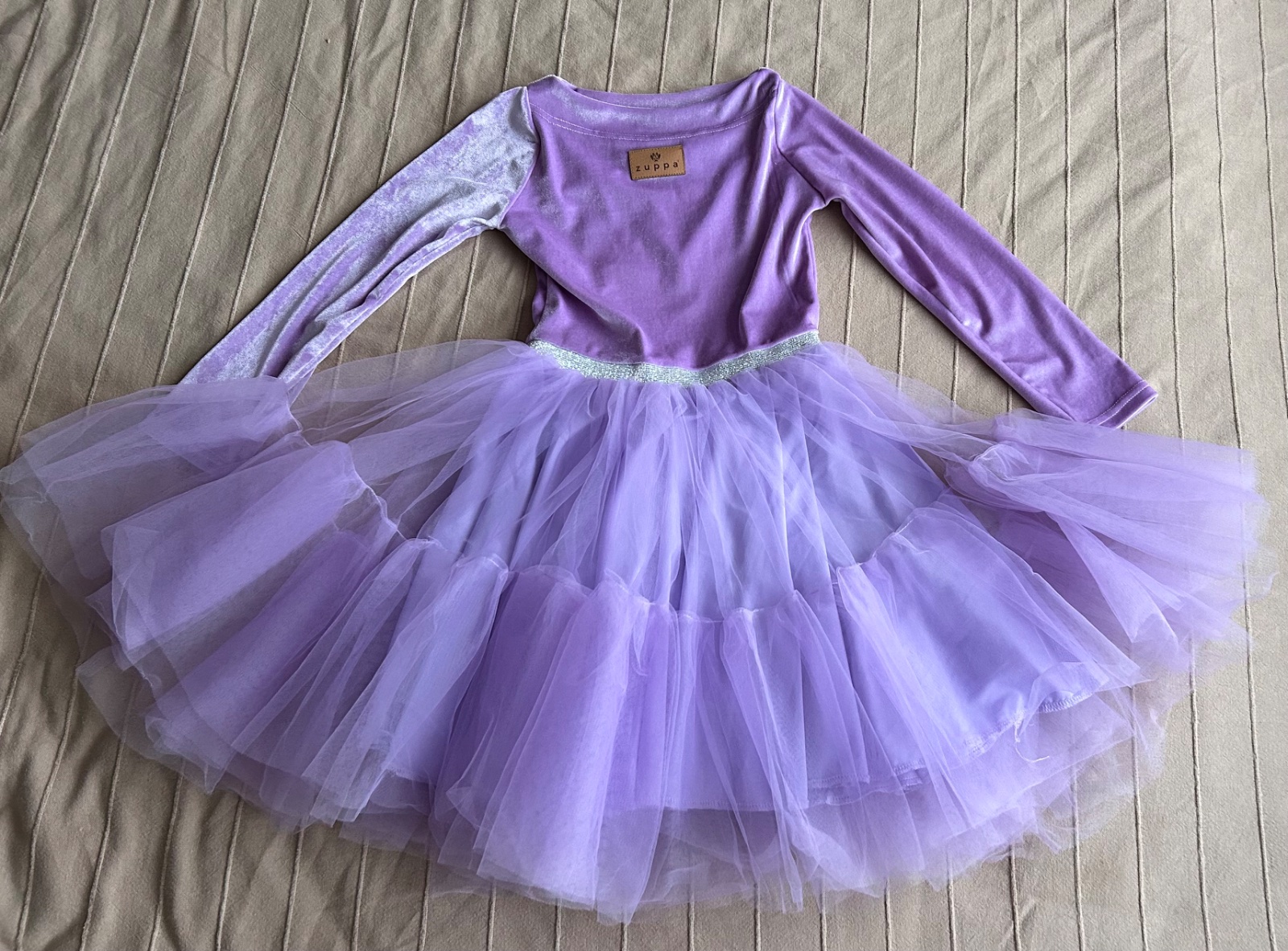 Fialové tylovo - velúrové šaty od slovenskej značky Zuppa. Veľkosť 122/128.
