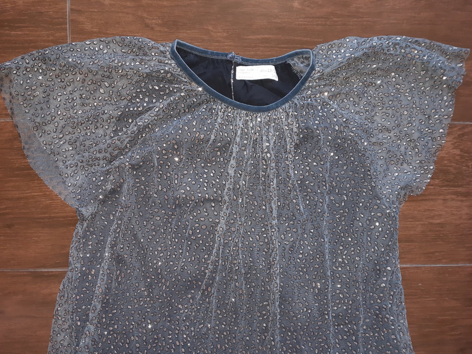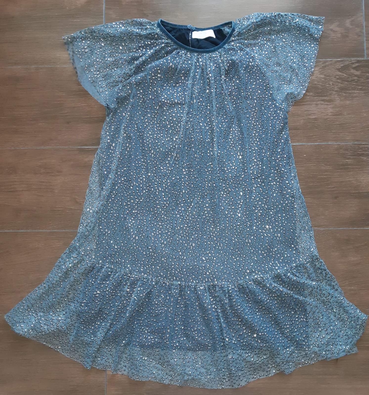 Nádherne slávnostne - príležitostné nosené šaty s jagavými aplikáciami - zlate trblietky. Šaty majú netopierie rukávy, spodničku a celkový efekt nočnej oblohy posiatej hviezdami. Dĺžka 82cm , šírka pod pazuchami 43cm , strih do áčka