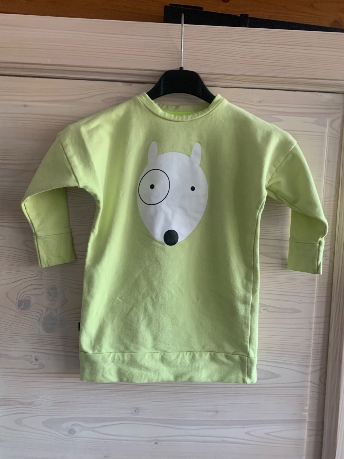 Limetkovozelené šaty od Lemur, zateplené, Top stav, bulteriér po tme svieti, sedia na 110 a 116