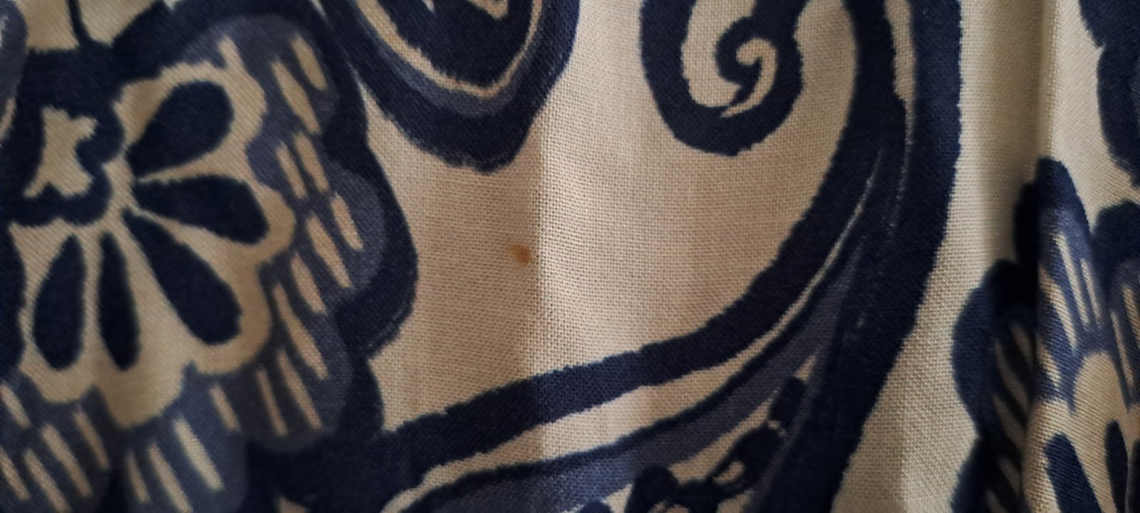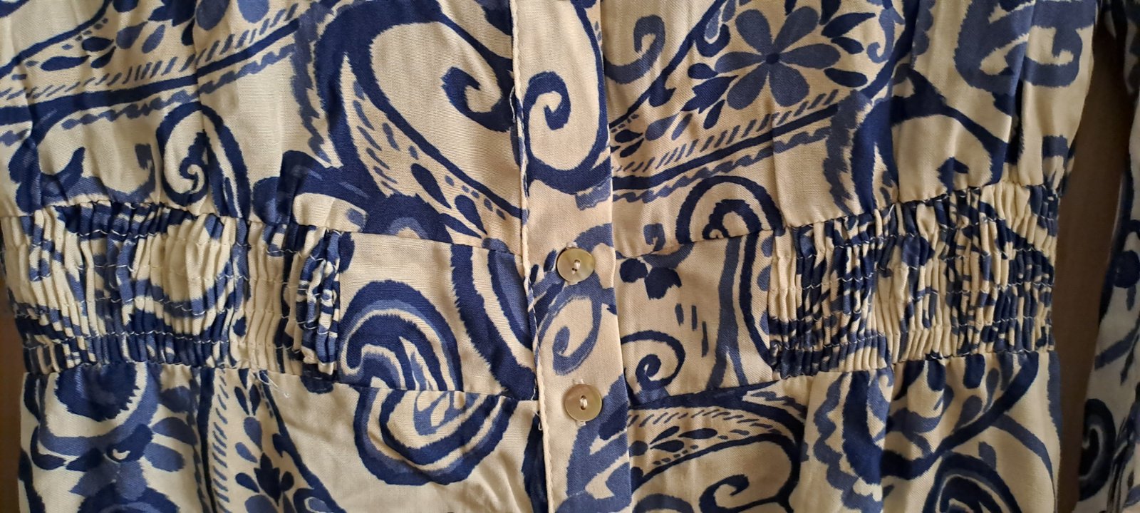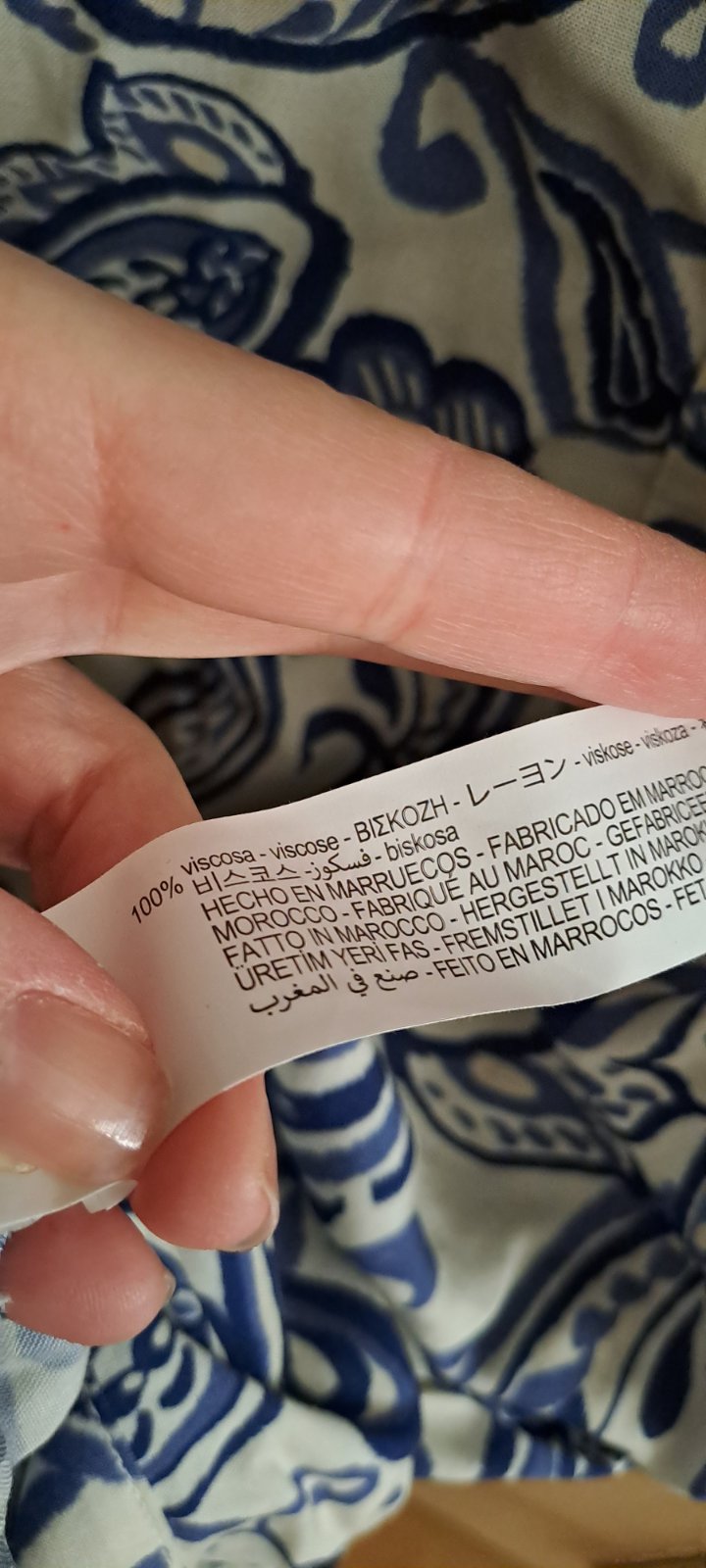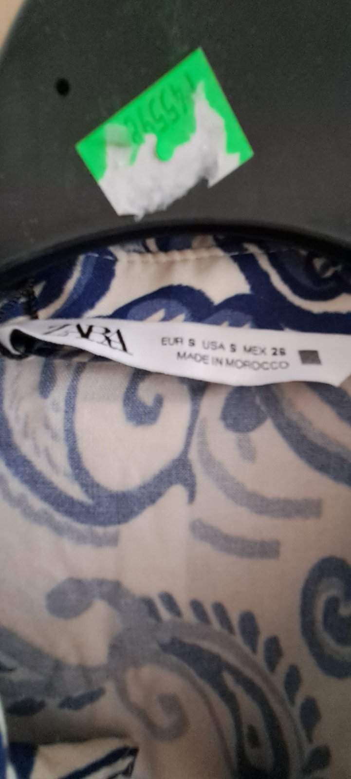 Predám 1x oblečené (odskúšané) šaty Zara, dlhý rukáv, v páse gumička, zapínanie na gombíky. Vo vrchnej časti na ľavej strane malý fliačik (na foto), preto nízka cena, inak bez poškodení.