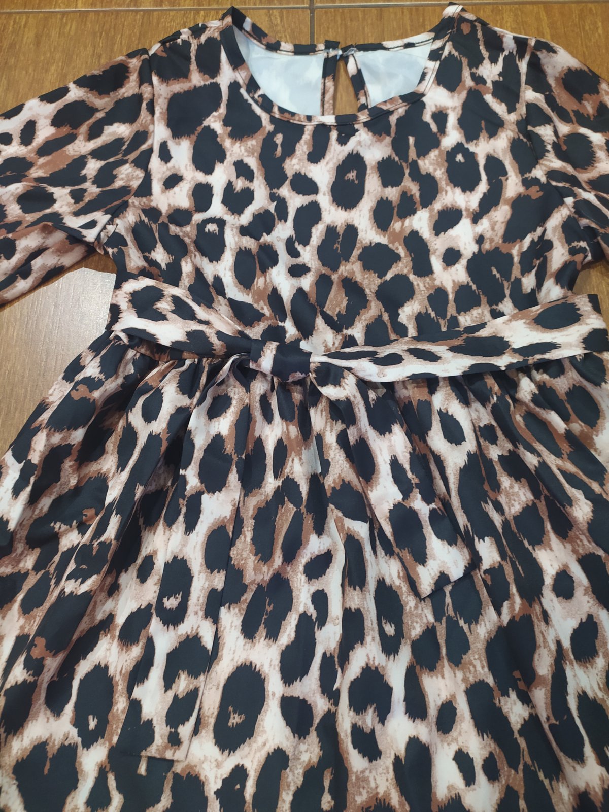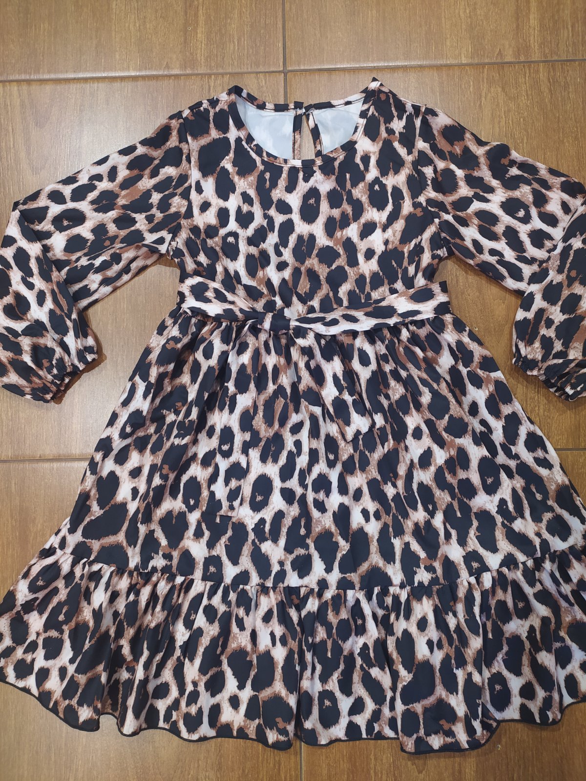Krásne šatky v Leo vzore.Volny strih ,v páse strihnute a nariadené, doplnené opaskom.