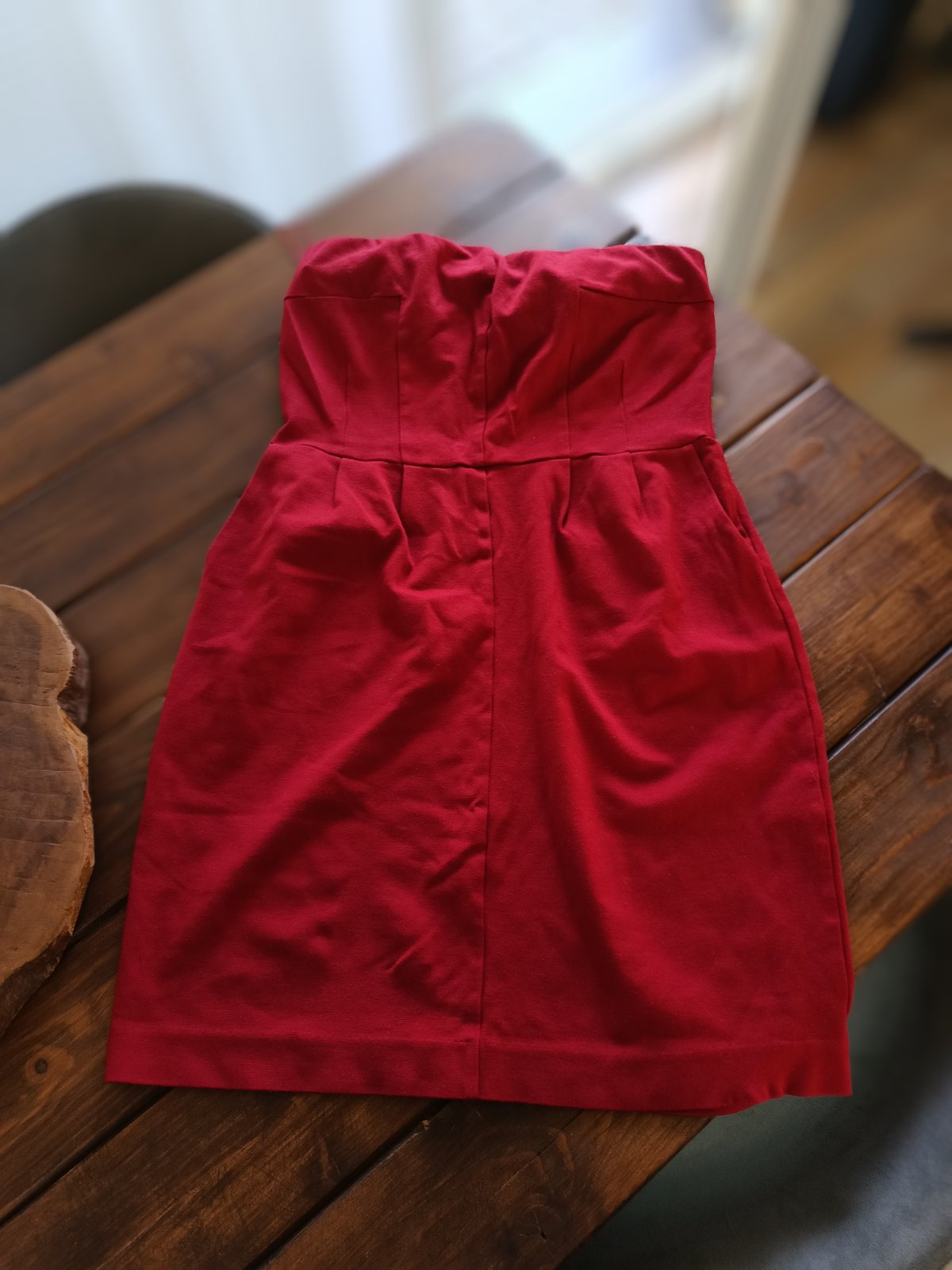 Express bordovo-červené šaty bez ramienok M