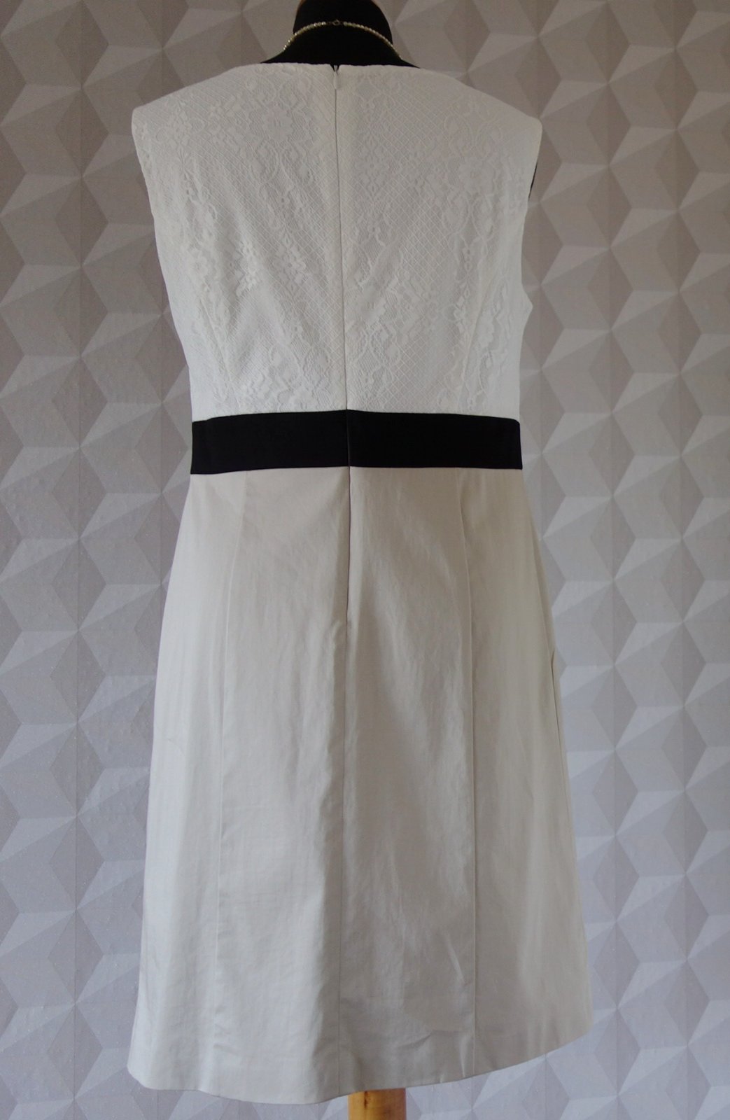 Šaty sú ceruzkového strihu, celé podšité, vrchná biela časť je z elastickej čipky, spodná je kvalitná jemná látka. Vhodné na bežné nosenie, ale aj ako spoločenské.