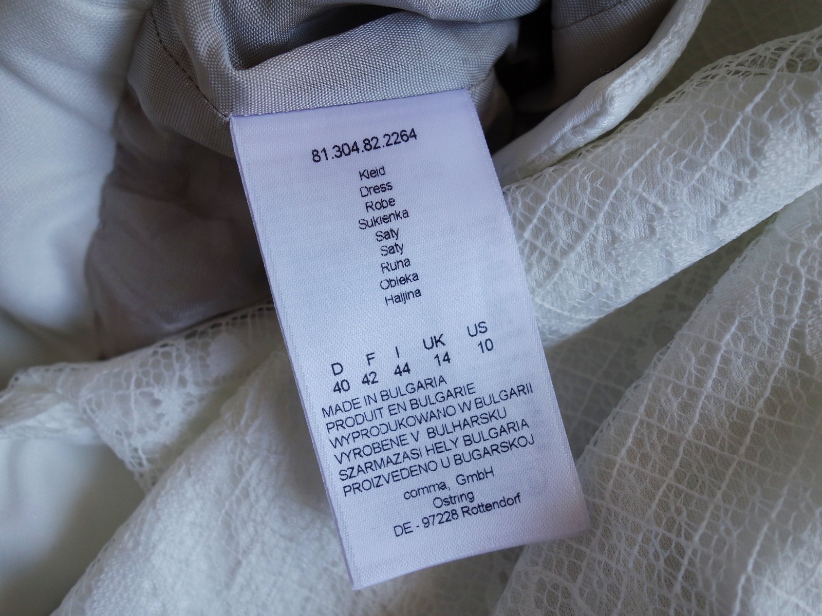 Elegantné dámske šaty Comma, , veľ.40, rozmery: dĺžka 94cm, pod pazuchami 2x46cm, pás 2x42cm, boky 2x50cm.