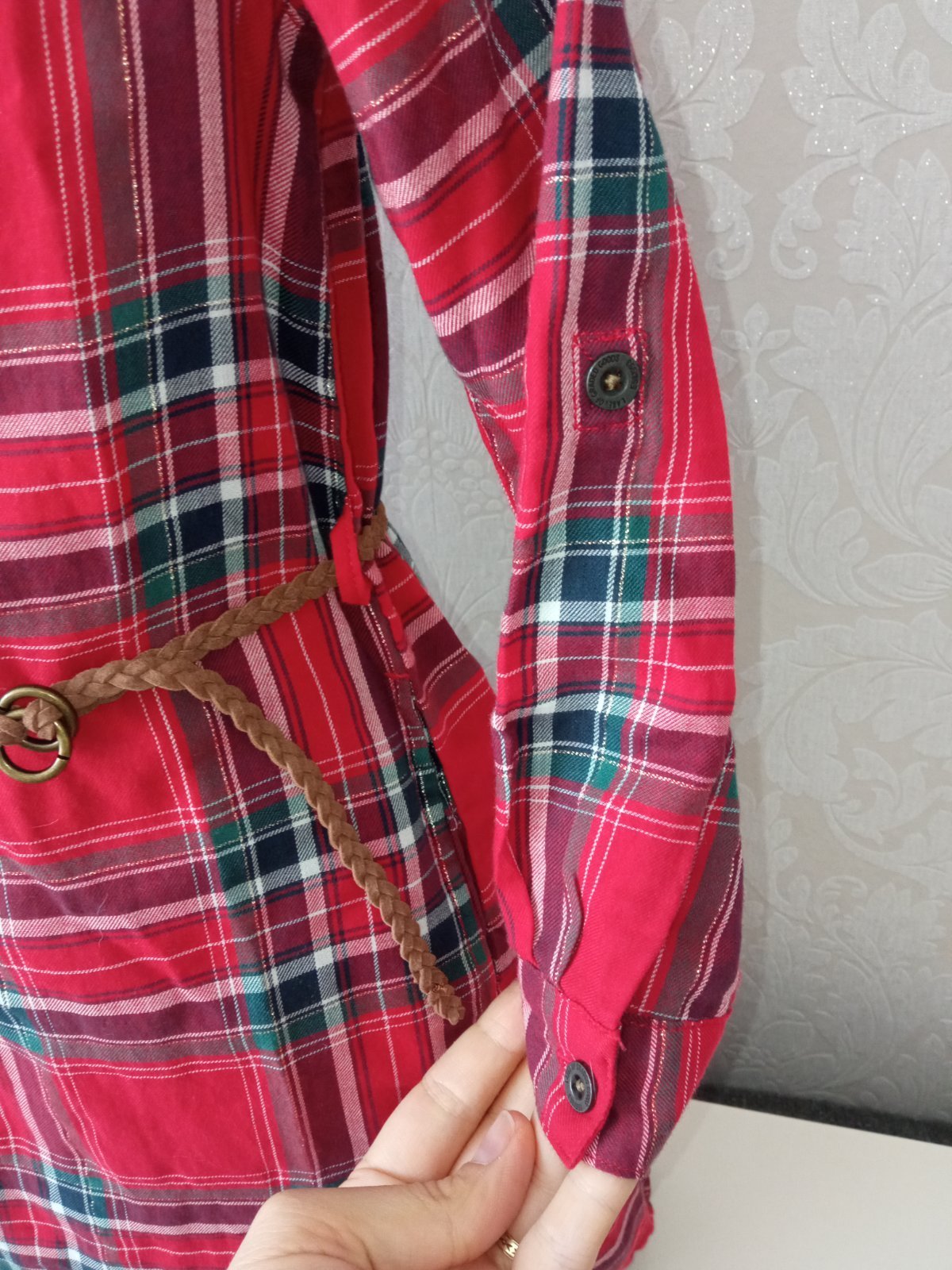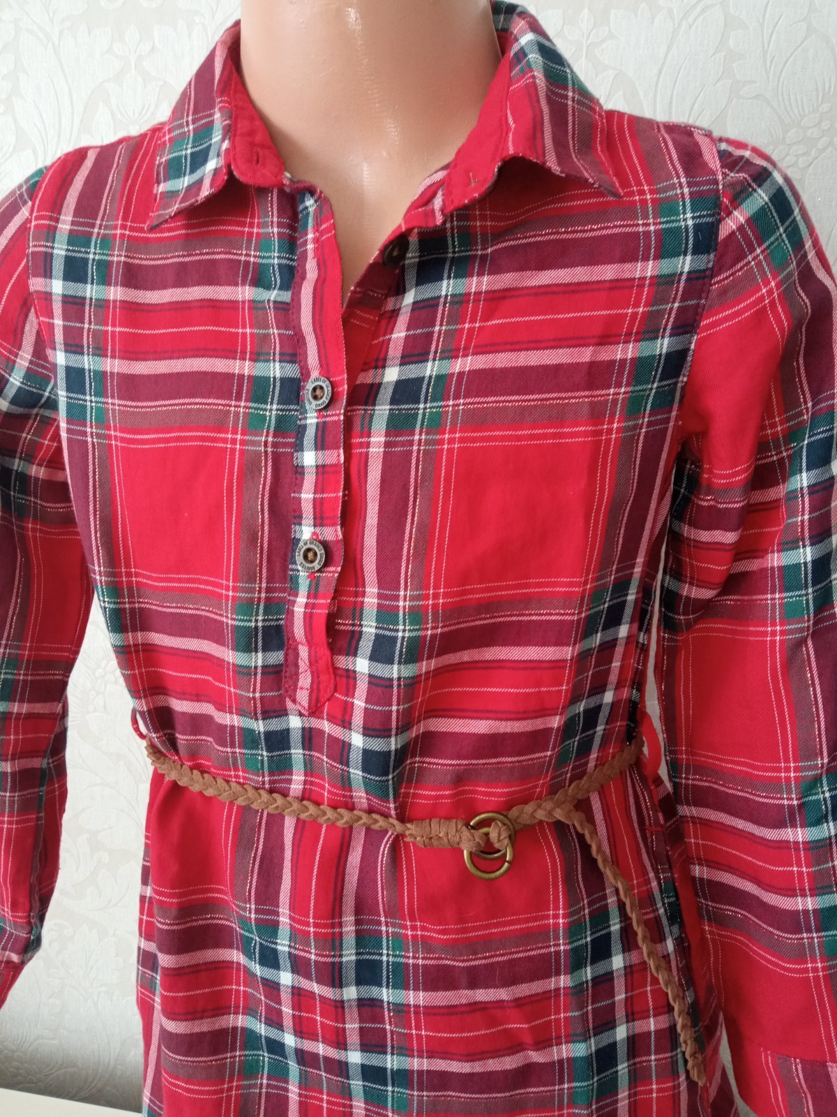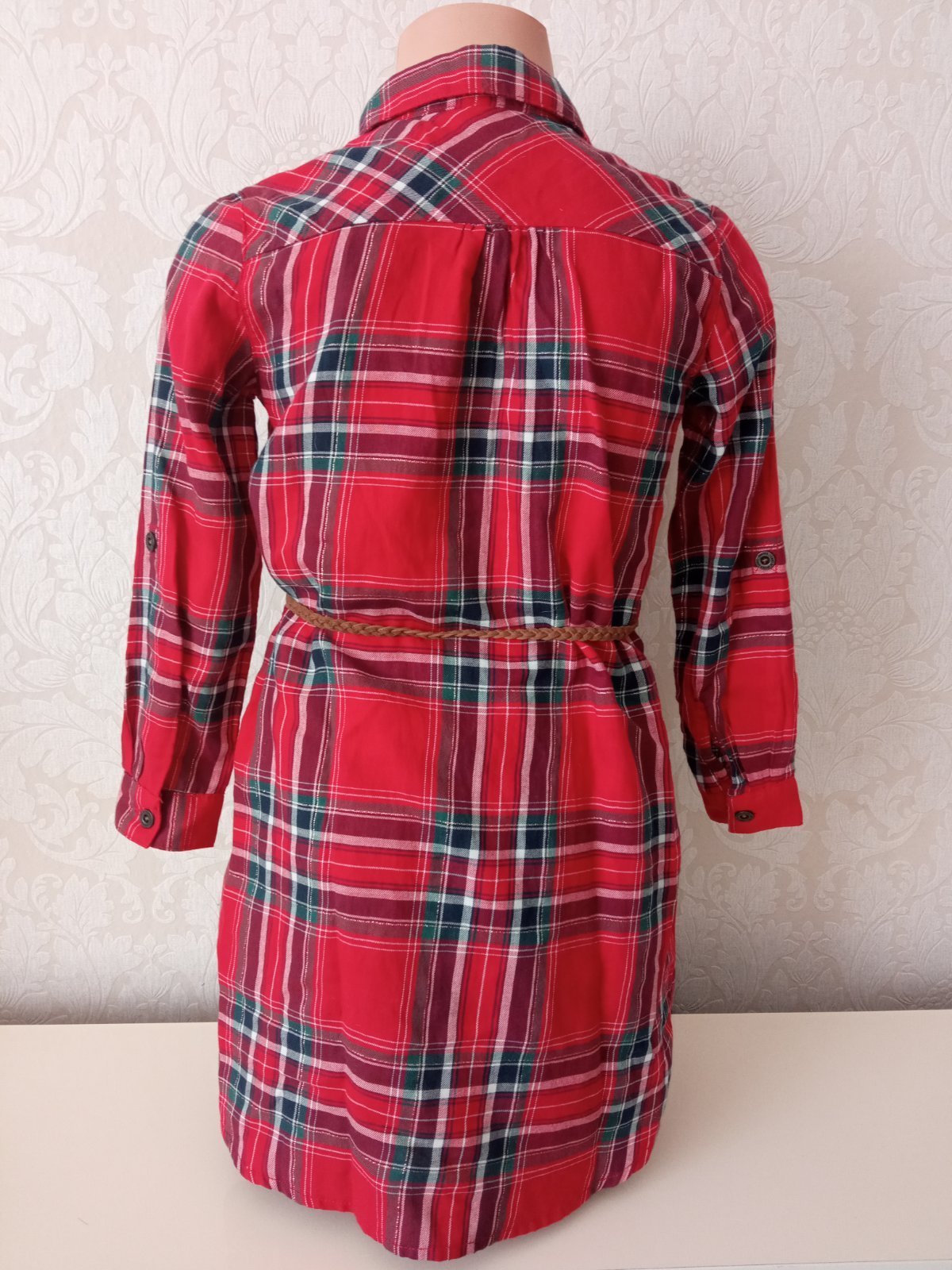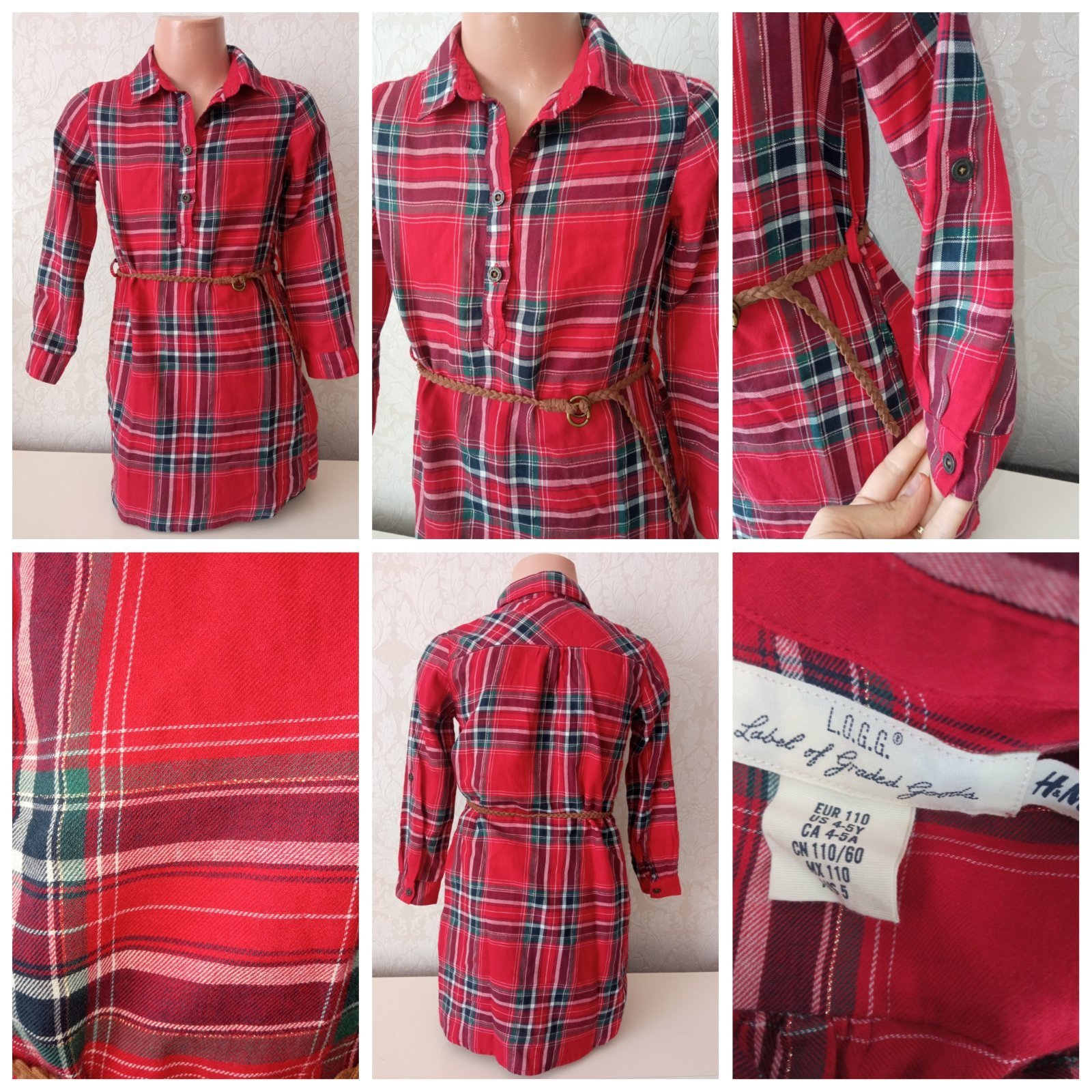 Dievčenské šaty tenké, s roll-up rukávmi, košeľové s opaskom, zapínanie na štyri gomíky, nie sú elastické, veľkosť 110, materiál 100%bavlna, H&M.