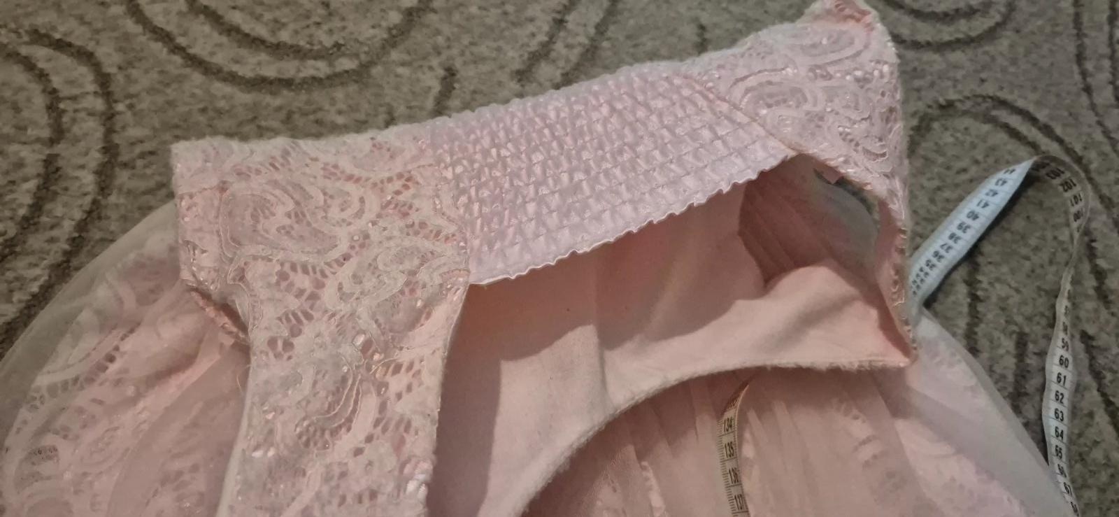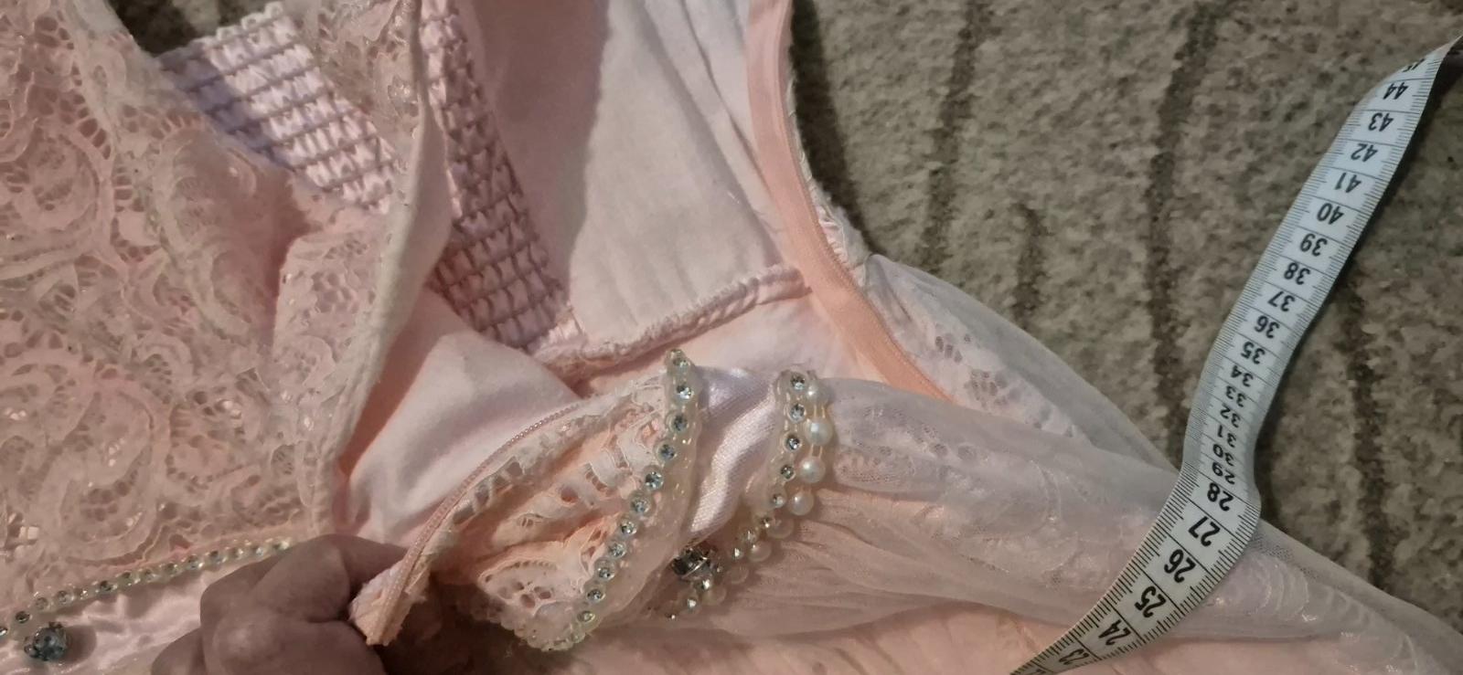 Pekné, nadýchané. Ozdoba na páse sa odlúpila, ja som lepila taviacou pištoľou, treba si zas prichytiť. Aj kamienky som opravovala. Aj keď to okolo pasu nie je v 100% stave, veľmi pekne ukážu. Veľkosť 110/116.