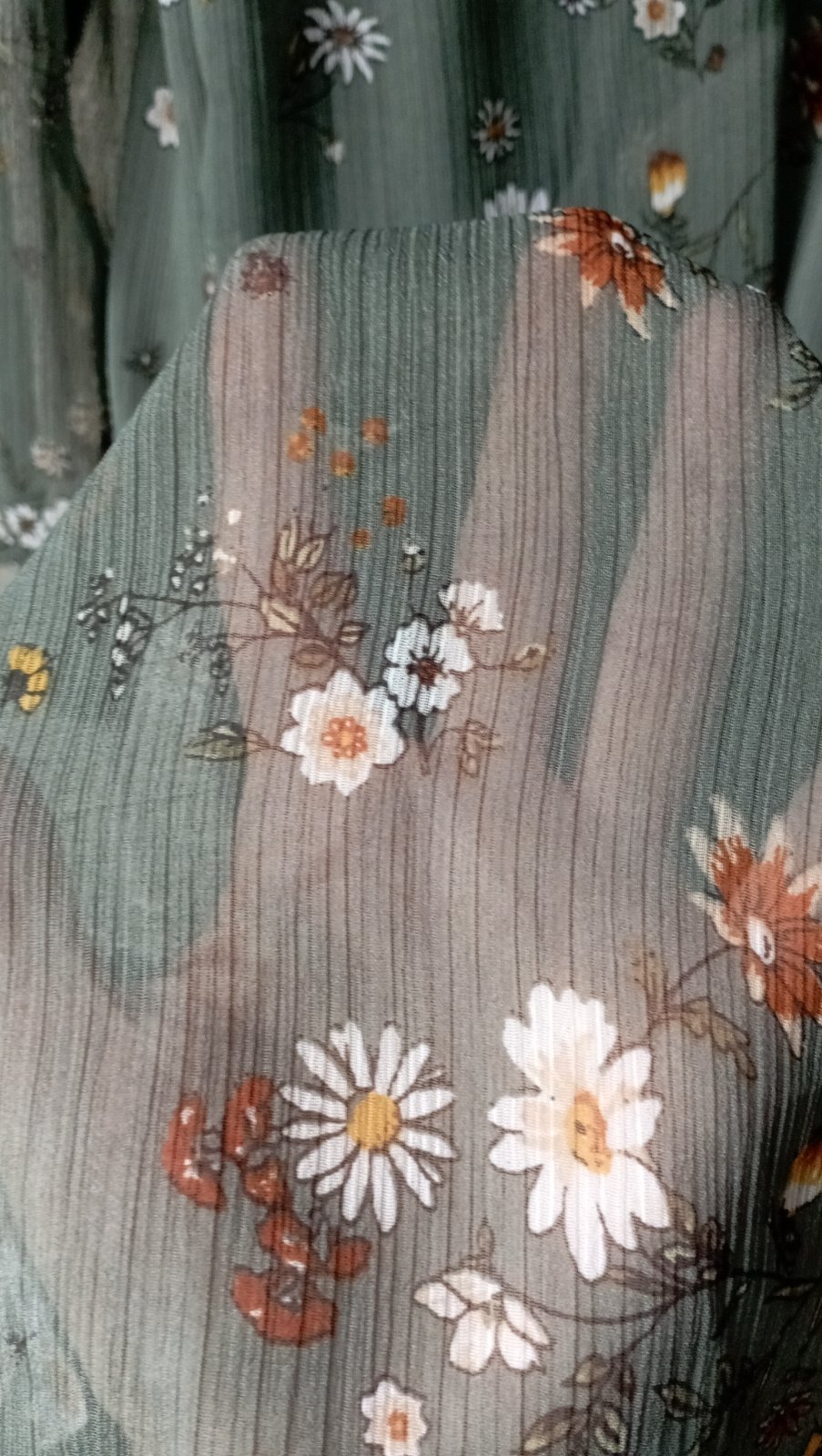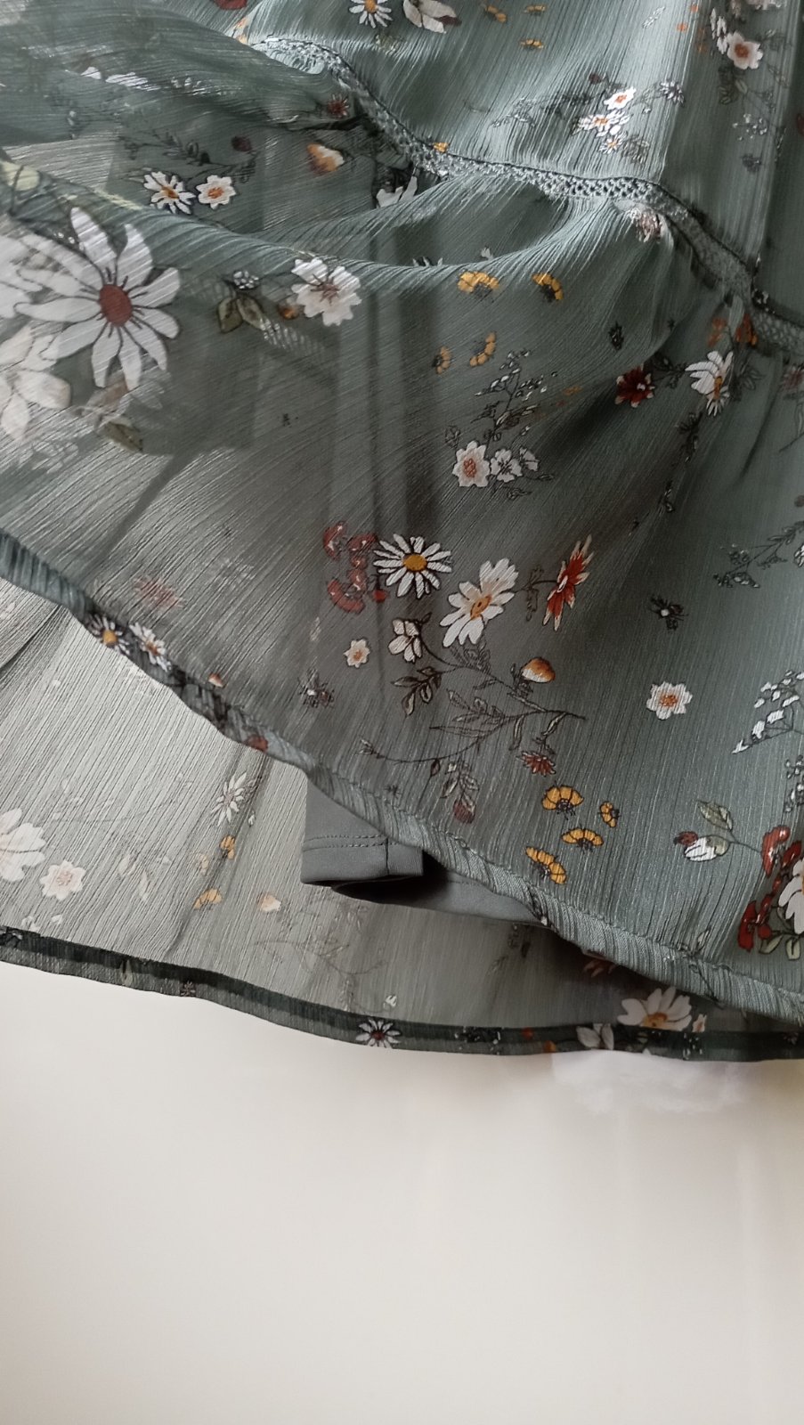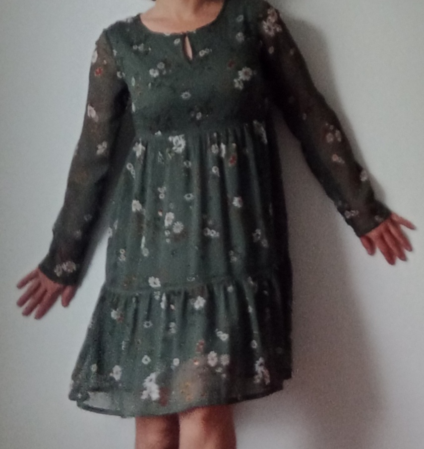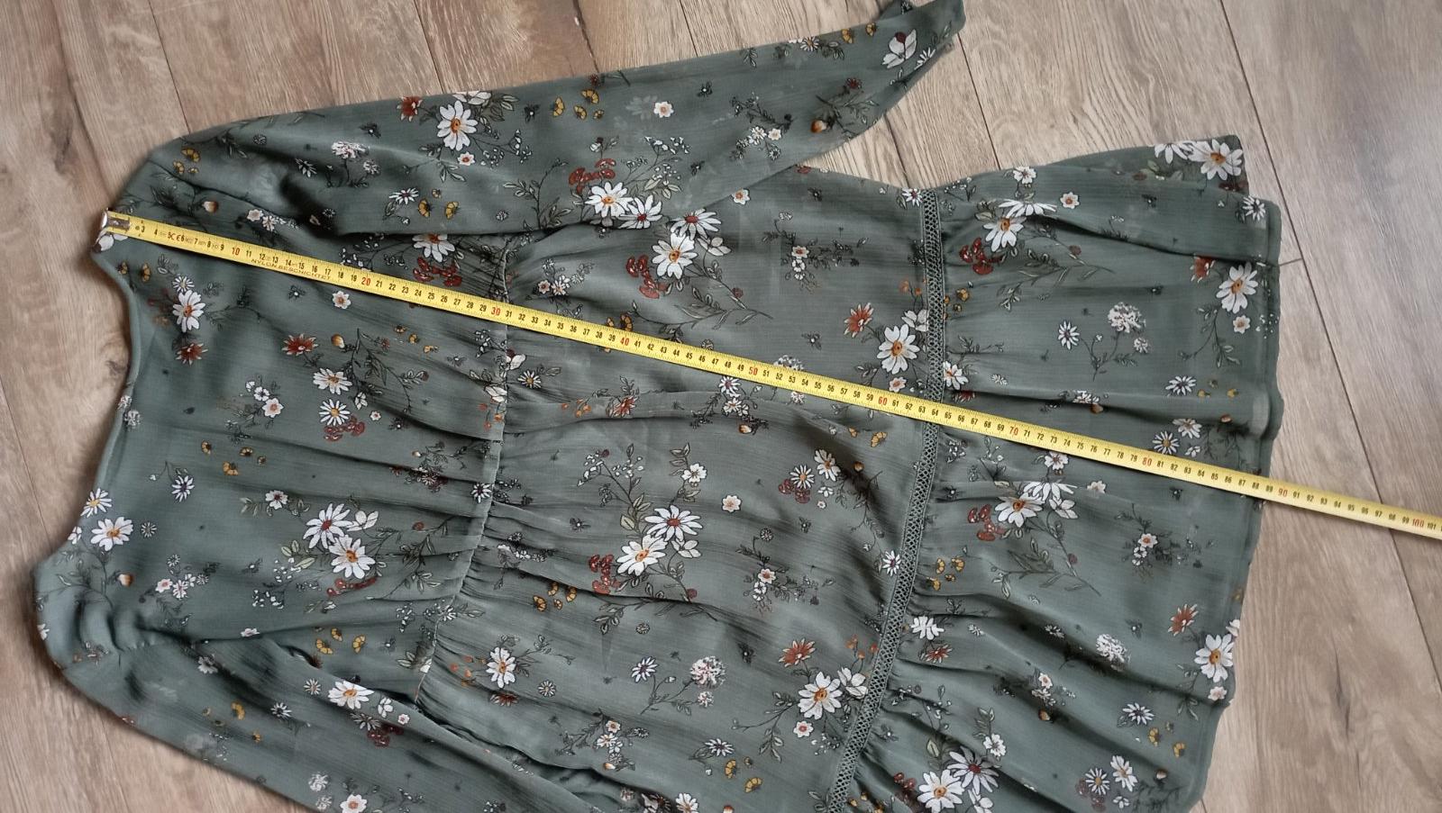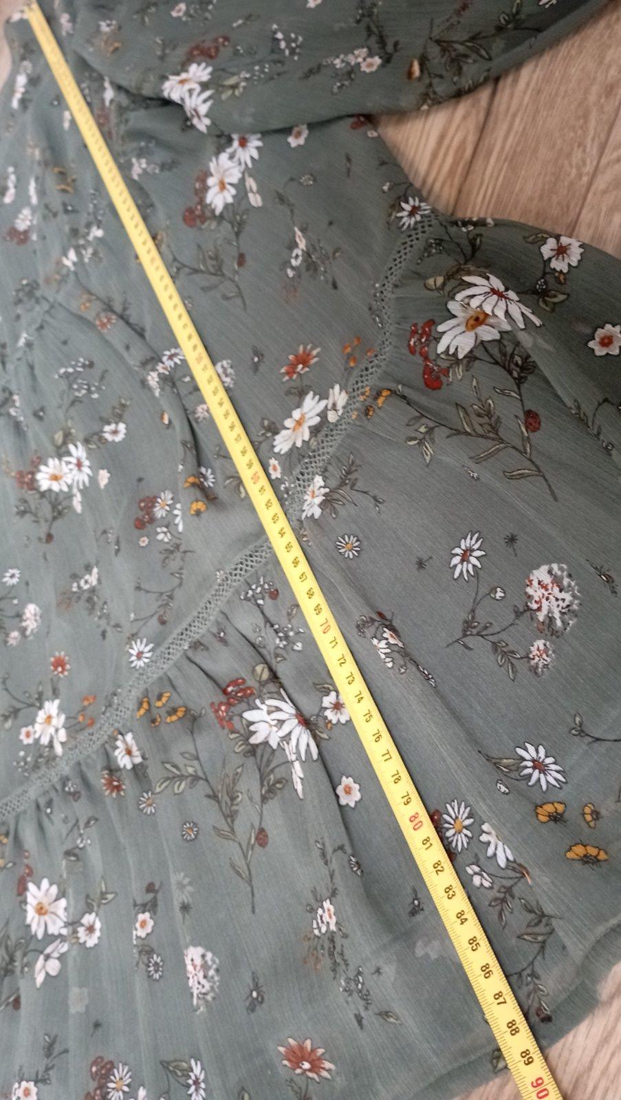 Nádherné tmavozelené šaty s kvetinovou potlačou. Výborný stav, raz oblečené, ako nové. Majú dve vrstvy (vrchná je priehľadná), rukávy sú nepodšité. Veľmi pekne ukážu oblečené (doplním foto na postave neskôr).