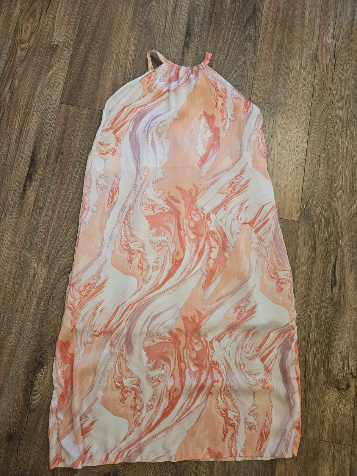 Krásne, jediná chyba trosku sa pára nitka na spodnom leme. Inak bez poškodenia. Veľkosť sedí tak na 146 až 152 riaďte sa rozmermi.