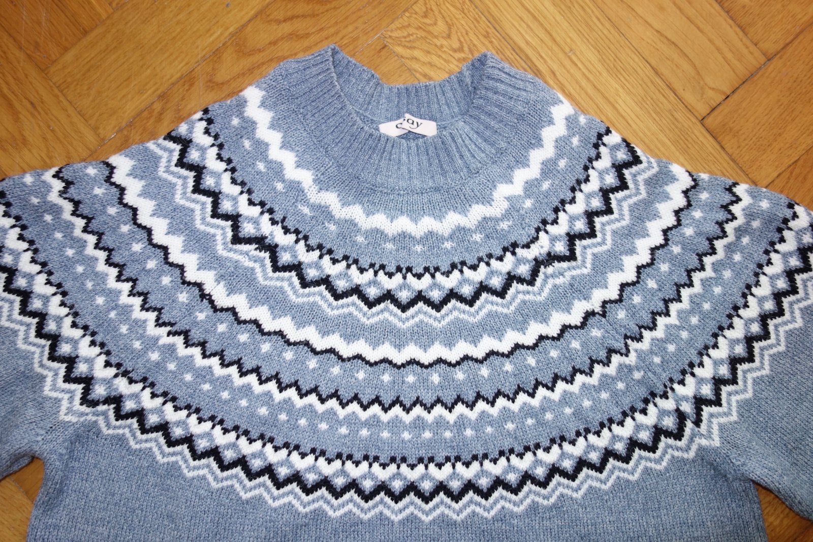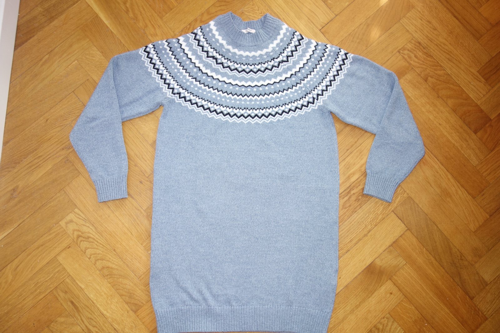 Výborný stav. Jemný úplet, nórsky vzor. 62% akryl, 31% polyester, 7% polyamid.