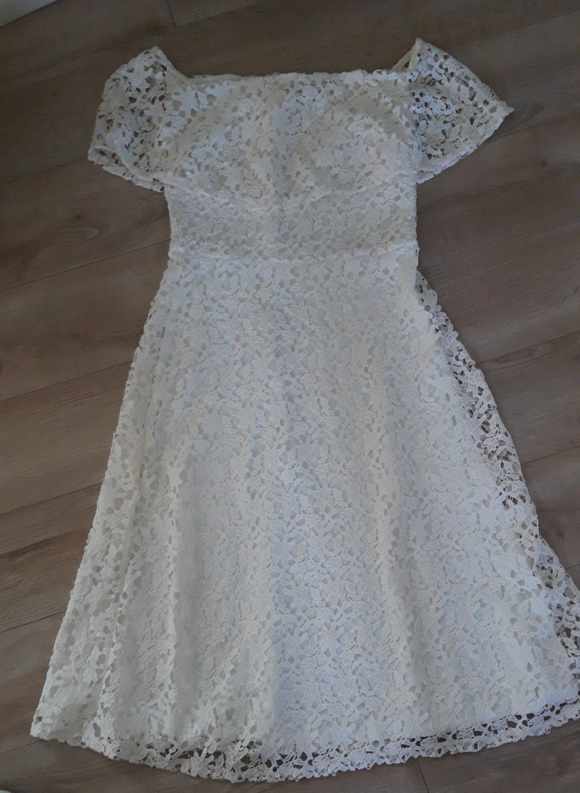 Krátke šaty, odporúčame na veľkosť S/M. Prsia: cca 88 cm Pás: 72 cm Dĺžka od ramena: 88 cm Šaty sú vhodné na venčeky, svadby a iné slávnostné príležitosti.