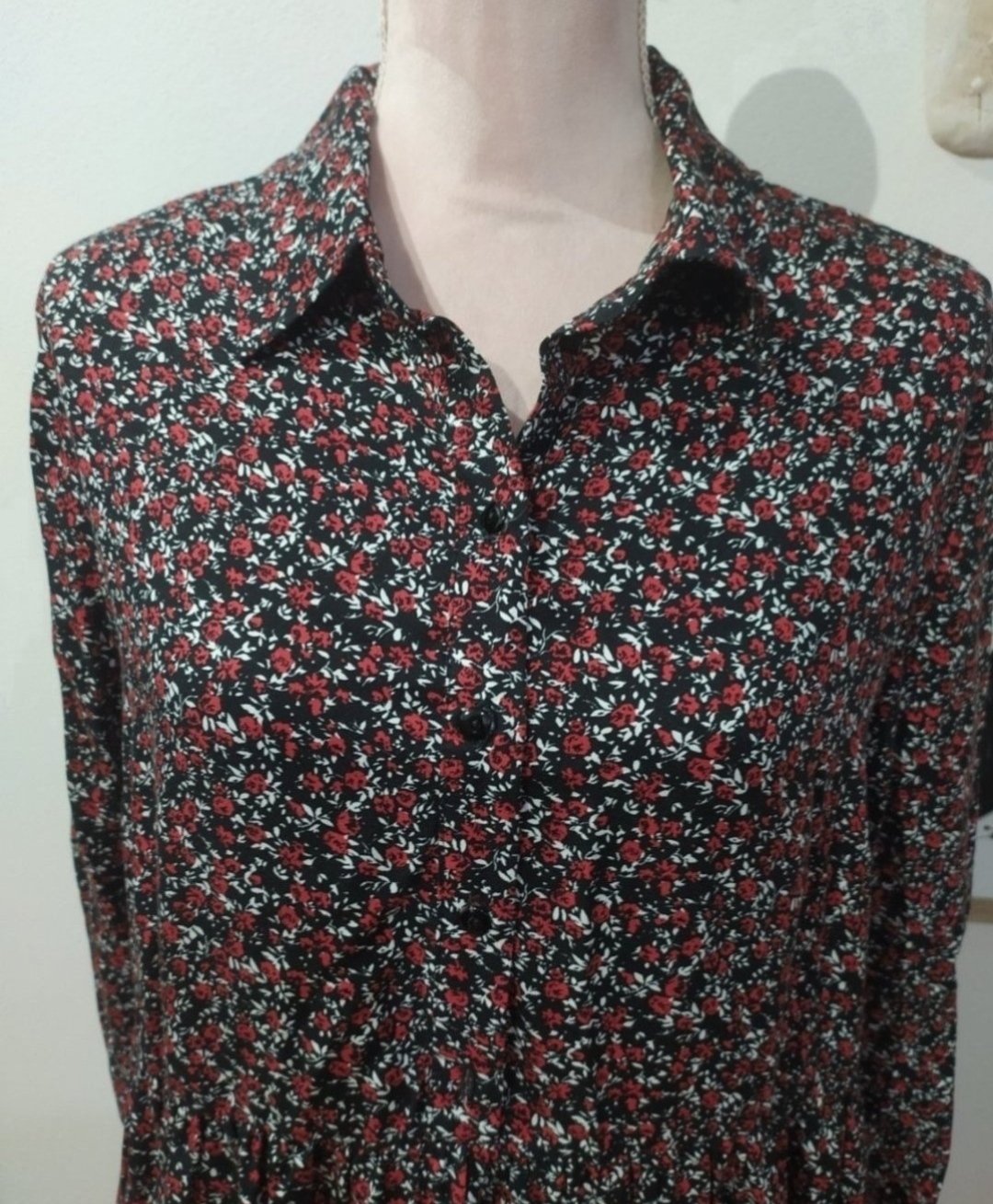 Málo nosené čierne kvetinové šaty s viazaním na krku. Zapínanie na boku na zips. Šaty majú podšité čierne šaty