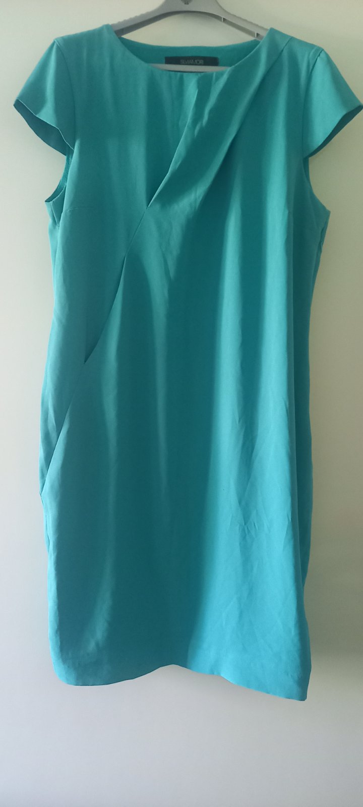 Farba je taka mentolova, talianska značka Silvia Mori veľkosť je uvedená talianska 48, odhadujem naša 42, jedinke malinke zatiahnuté jednej nitky je detail na foto, je to vidieť iba úplne z blízka