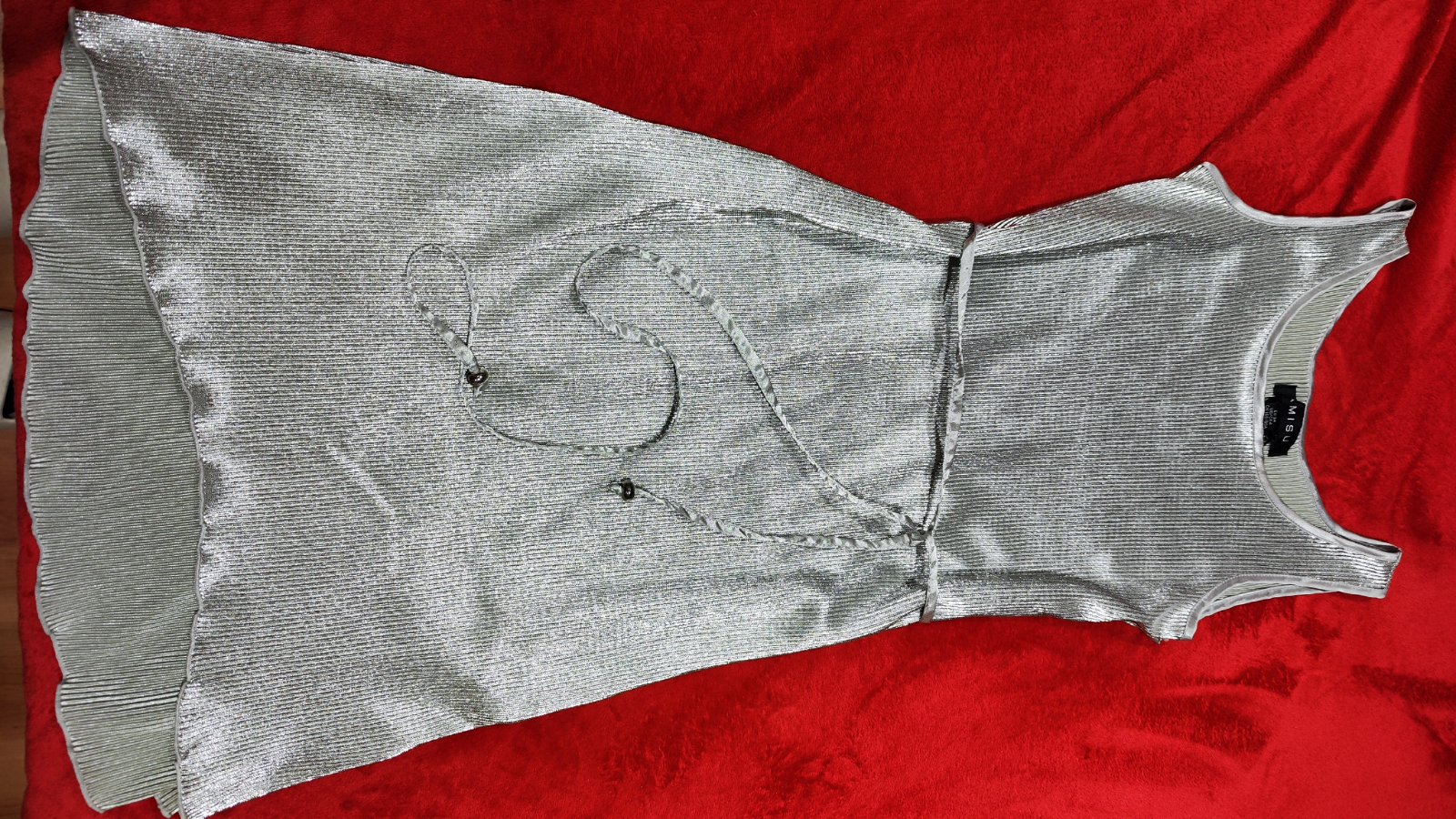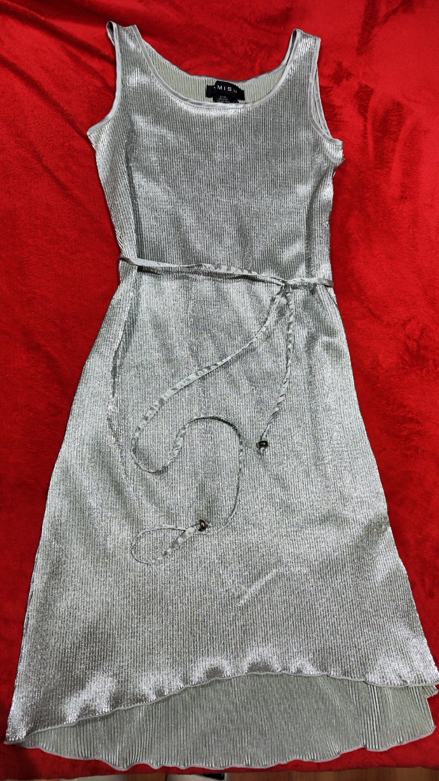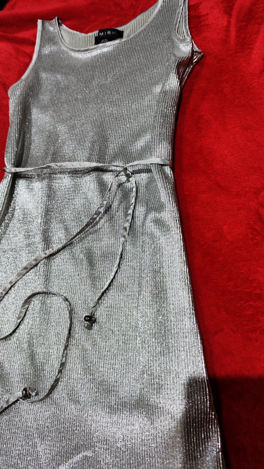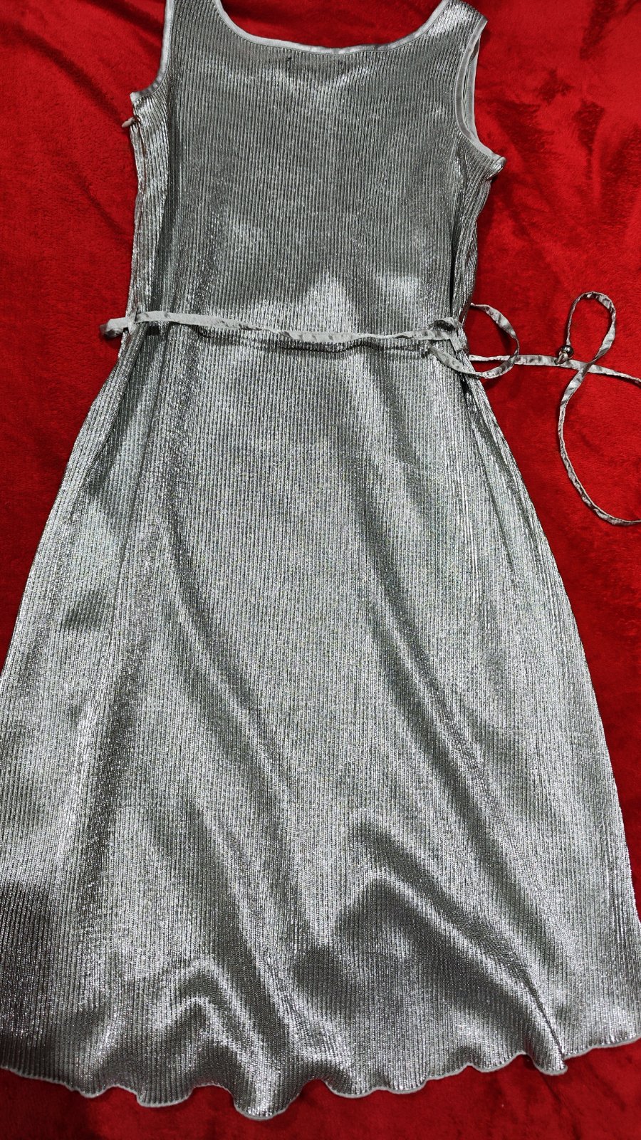 Dámske strieborné šaty, veľkosť písaná 34 a sadnú na xs-mensie s. Sú elastické. Nemajú žiadne poškodenia. Uvazuju sa opaskom ktorý sa dá dať úplne dole. Cena + pošta (prevodom) alebo osobne v Ba.