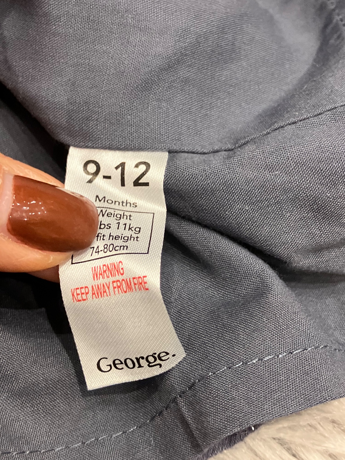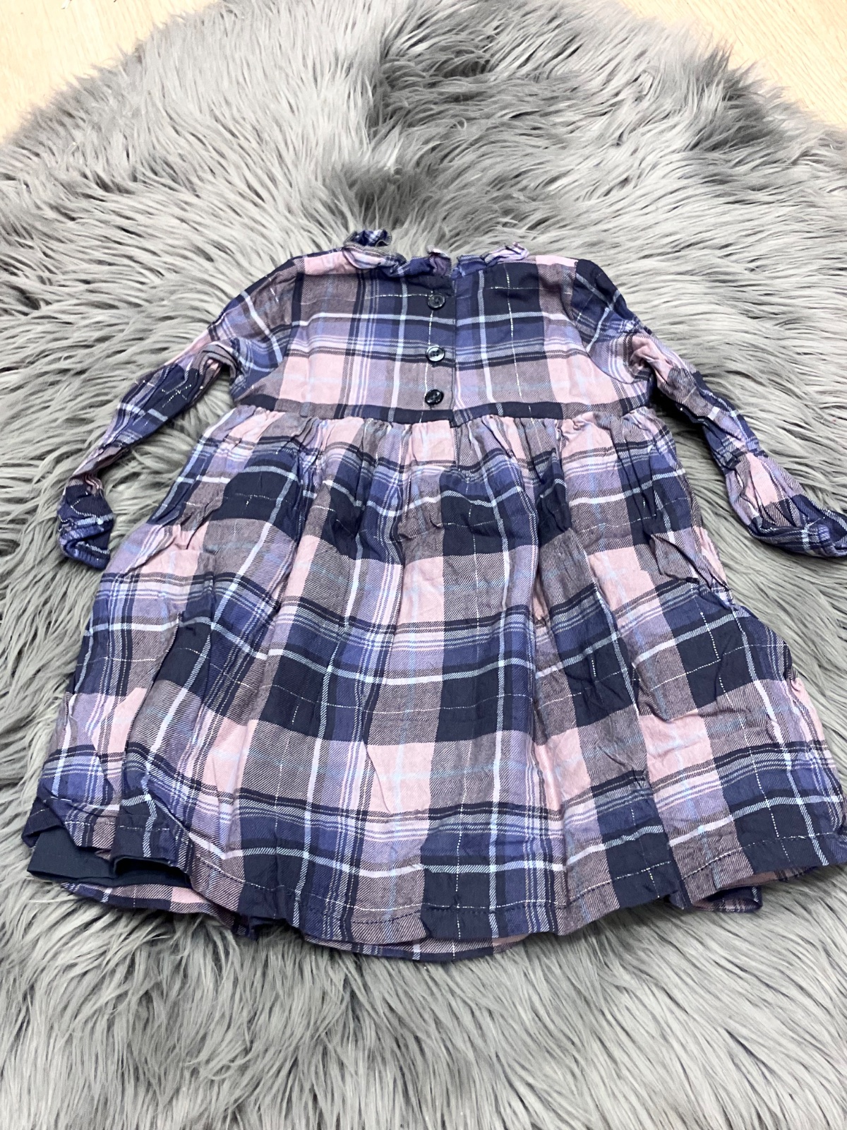Dievčenské šaty s dlhým rukávom, golierom, zapínanie vzadu na gombíky, nie sú elastické, materiál 50%viskóza 48%bavlna 1%metalizované vlákno 1%polyester. Farba: tmavomodro-svetlofialovo-fialová.