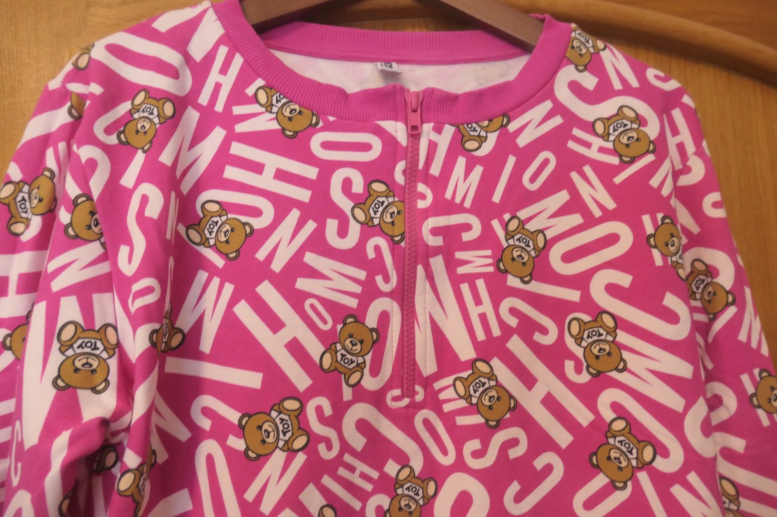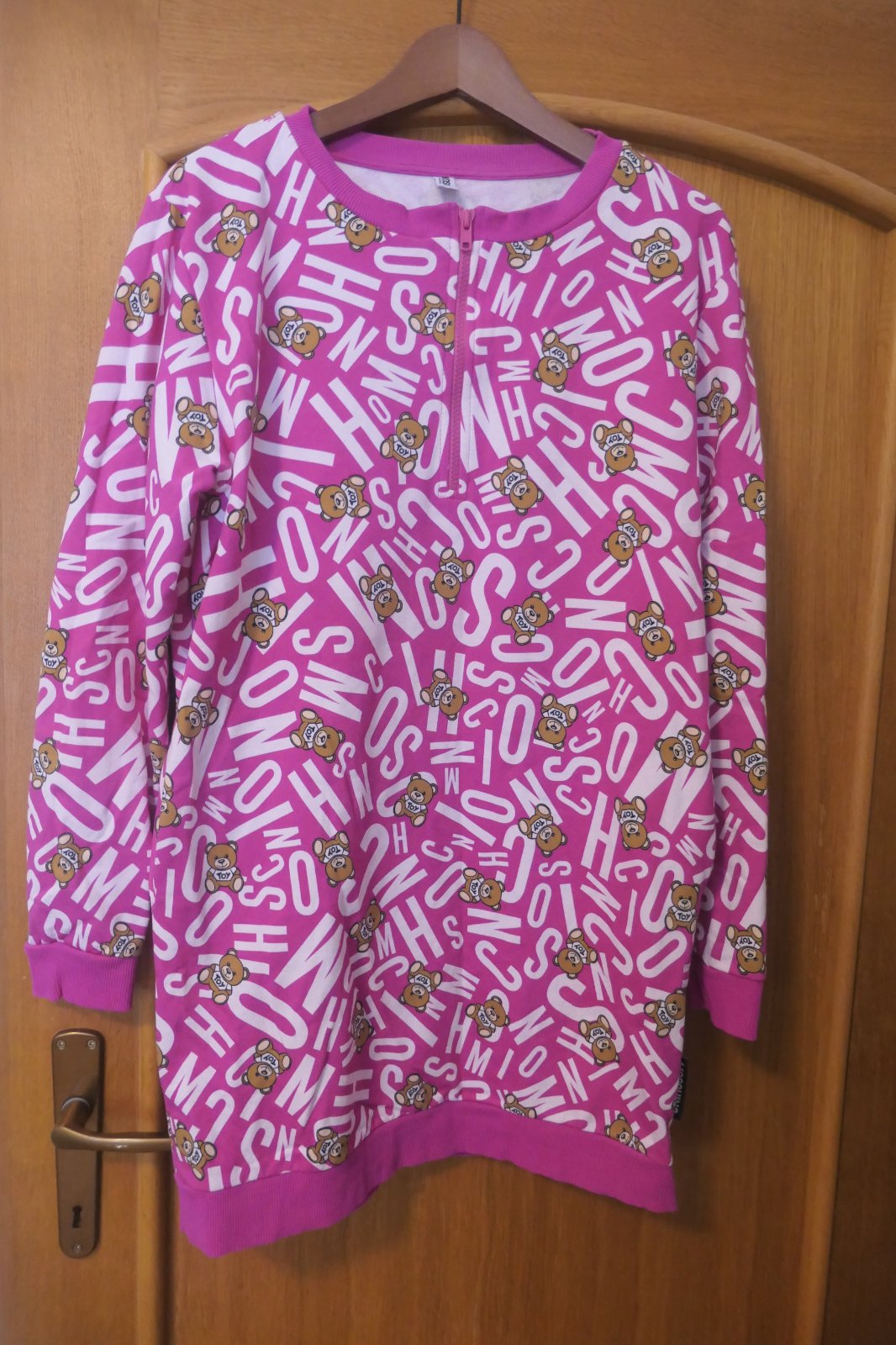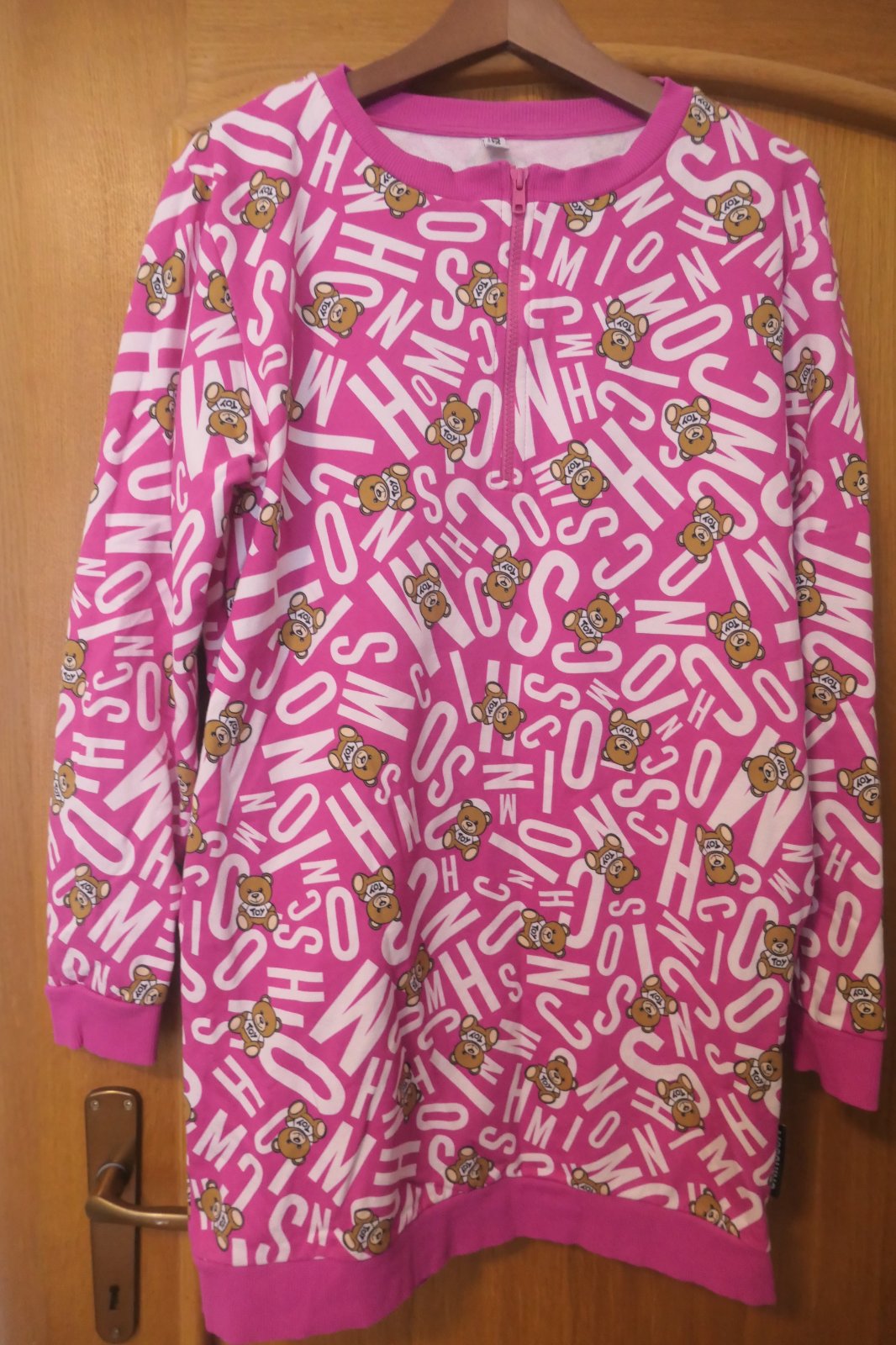 top stav, original Moschino ikonicke mikinkove super saty s vreckami, napisy medvediky, super v krasnej ruzovej, tento model mam aj ciernobiely, su uzasne