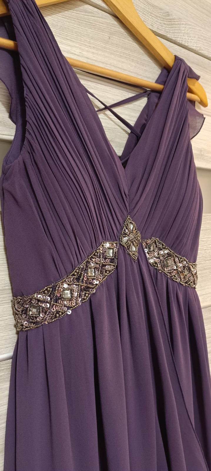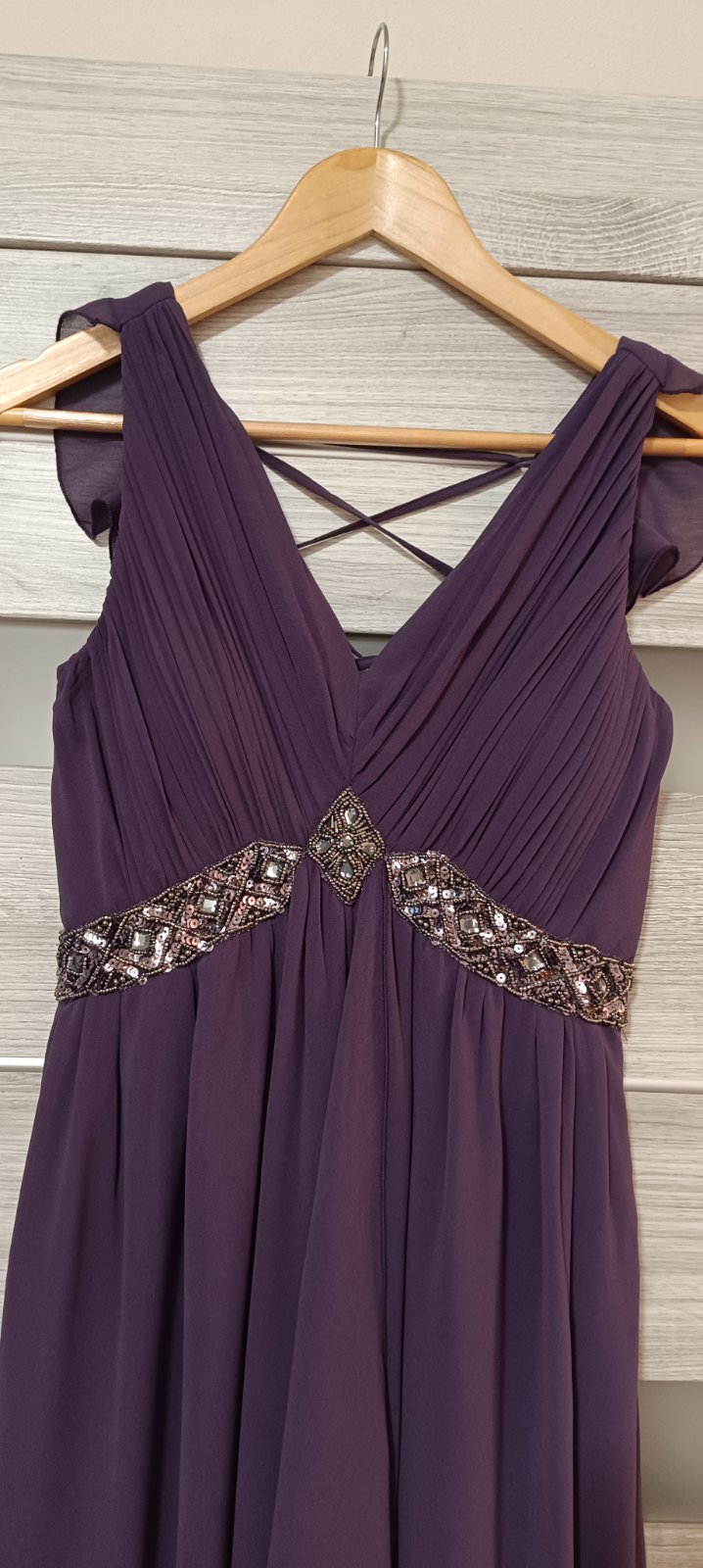 Ponúkam na predaj spoločenské šaty zn. Little Mistress vo veľkosti 36/S. Šaty boli použité 1x na plese. Farba je krásna tmavo fialová, vykladané sú kamienkami, so spodničkou, vzadu na šnurovačku, takže sa pekne prispôsobia postave. Vyčistené, nepoškodené.