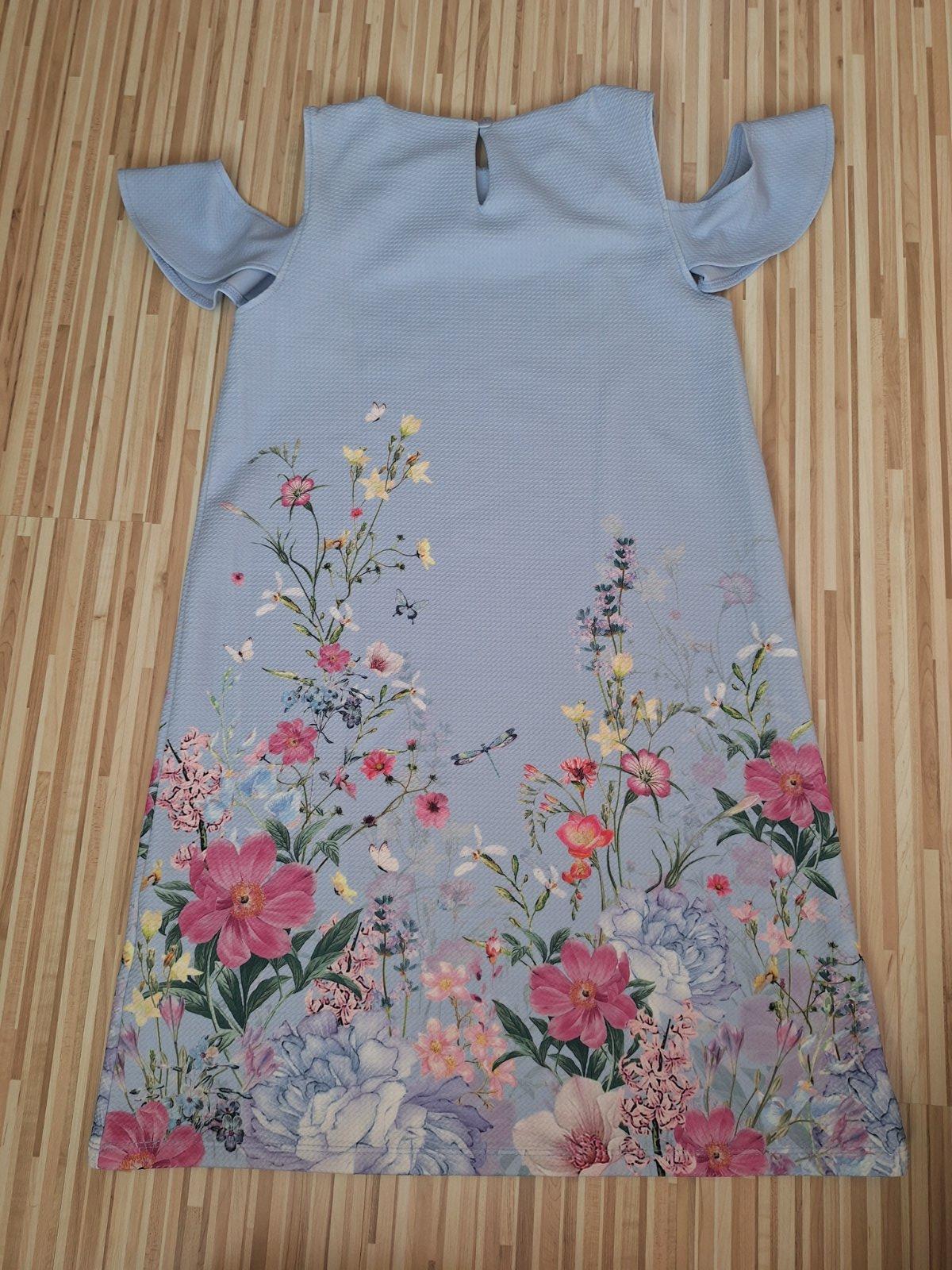 Krásne kvetované šaty vhodné na slávnostnú príležitosť, ale aj na bežné nosenie. Dĺžka 74 cm, cez prsia 38-42, elastan. Výborný stav.