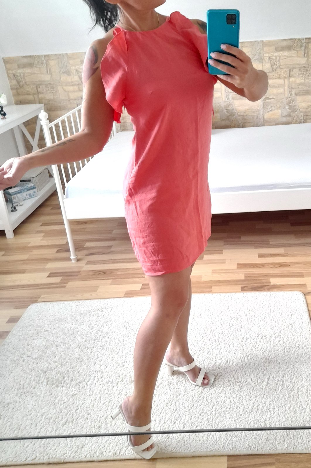 top stav, s volánikmi, na boku zips, dĺžka 76cm, šírka v podpazuší 42x2cm