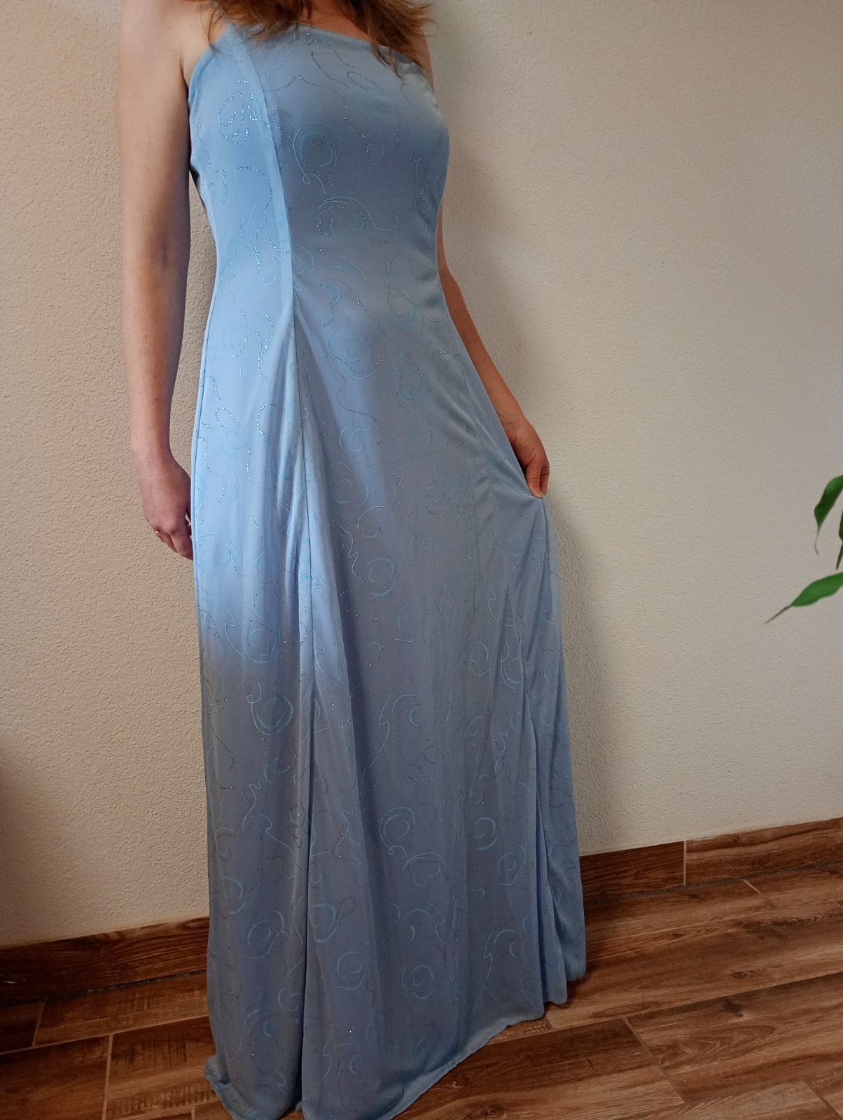 Predám spoločenské šaty sedia na veľkosť M. Dĺžka od podpazušia je 125cm. Pás 38x2cm. Dvakrát oblečené.