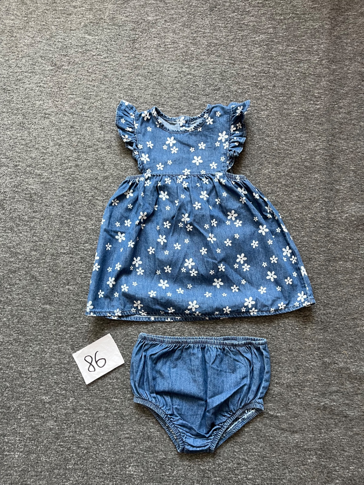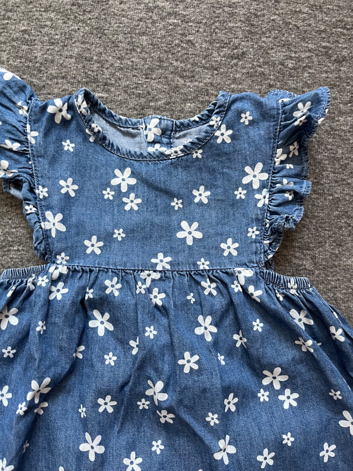 Párkrát oblečený letný set - ľahké rifľové šaty a gaťušky. Top stav. Veľkosť 86
