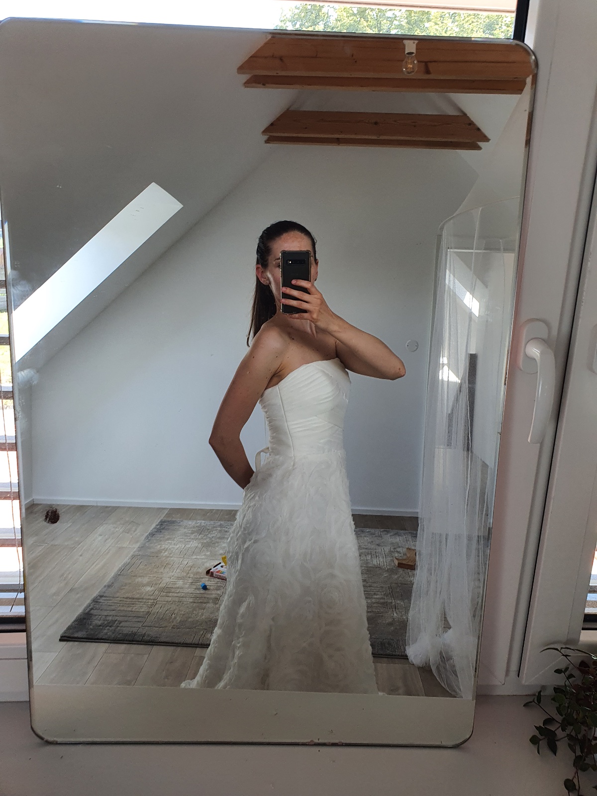 Ponúkam na predaj svadobné šaty zakúpené v svadobnom salóne Nicole. Šaty boli profesionálne vyčistené a upravené na výšku cca 177 cm, veľkosť 34, 36.