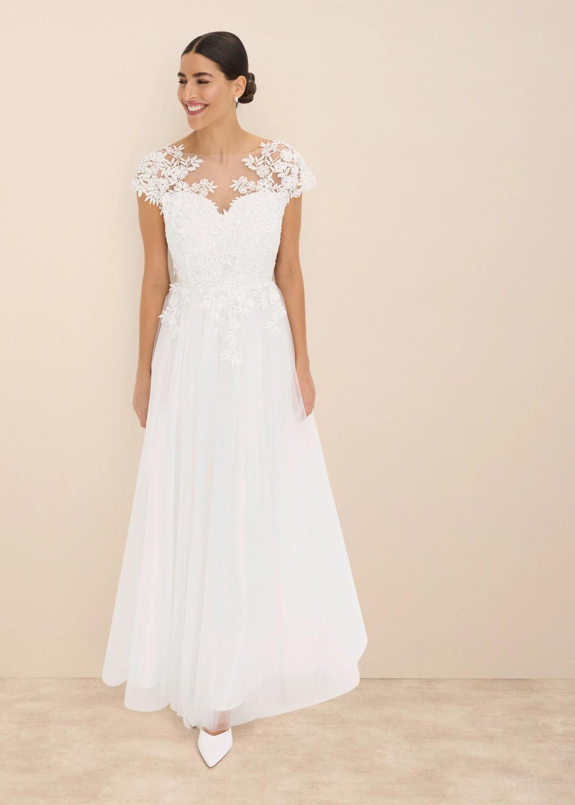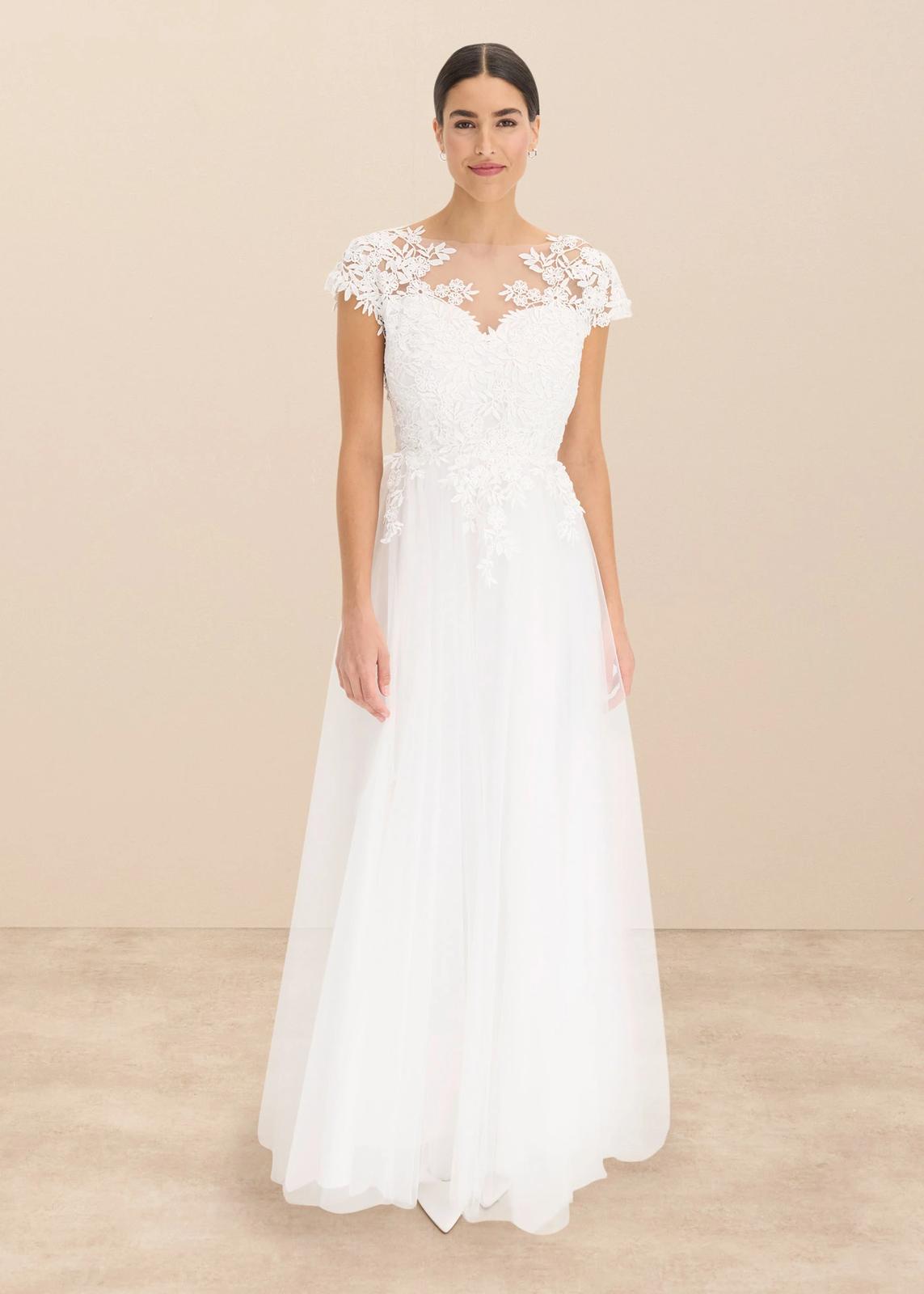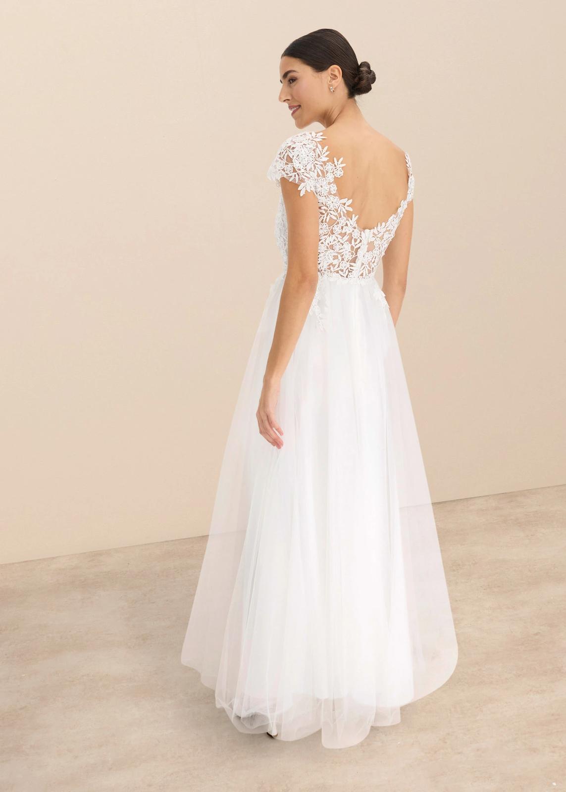 Predám svadobné šaty, veľkosť 40. Rozmery sú uvedené na priloženej fotografií. Na niektorých miestach poškodený tyl, nevidno pri chôdzi (šikovná krajčírka opraví). Cena 70 eur. Osobný odber Topoľčany, Nitra, Partizánske ... Prípadne odosielam poštou alebo cez Packetu pri úhrade platby vopred na účet.