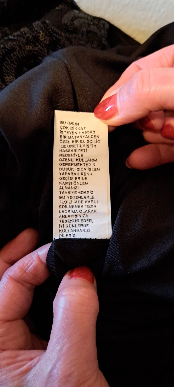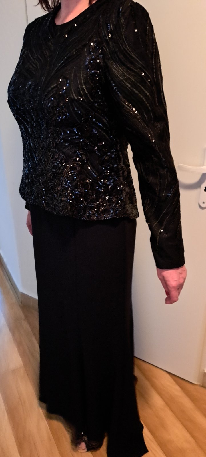 Spoločenské šaty nenosené, iba odskúšané, písaná veľkosť 48, vyrobené v Turecko. Ale toto číslovanie nesedí. Predávam kamarátke, ona bežne nosí v.42-44 a tomu šaty zodpovedajú, nie 48. Šaty sú v jednom kuse, nie je to zo dvoch dielov. Nedáva sa pod ne podprsenka na spodničke sú našité košíčky. Vid foto , rozmery cez prsia popod pazuchou 2x53cm, pás 2x49cm, predná dĺžka od pleca merané 150cm, zadná dĺžka 155cm, plece 12cm, rukáv 64cm, spodná šírka šiat 2x125cm. Cena pôvodná 70 eur, súčasná 35 eur.