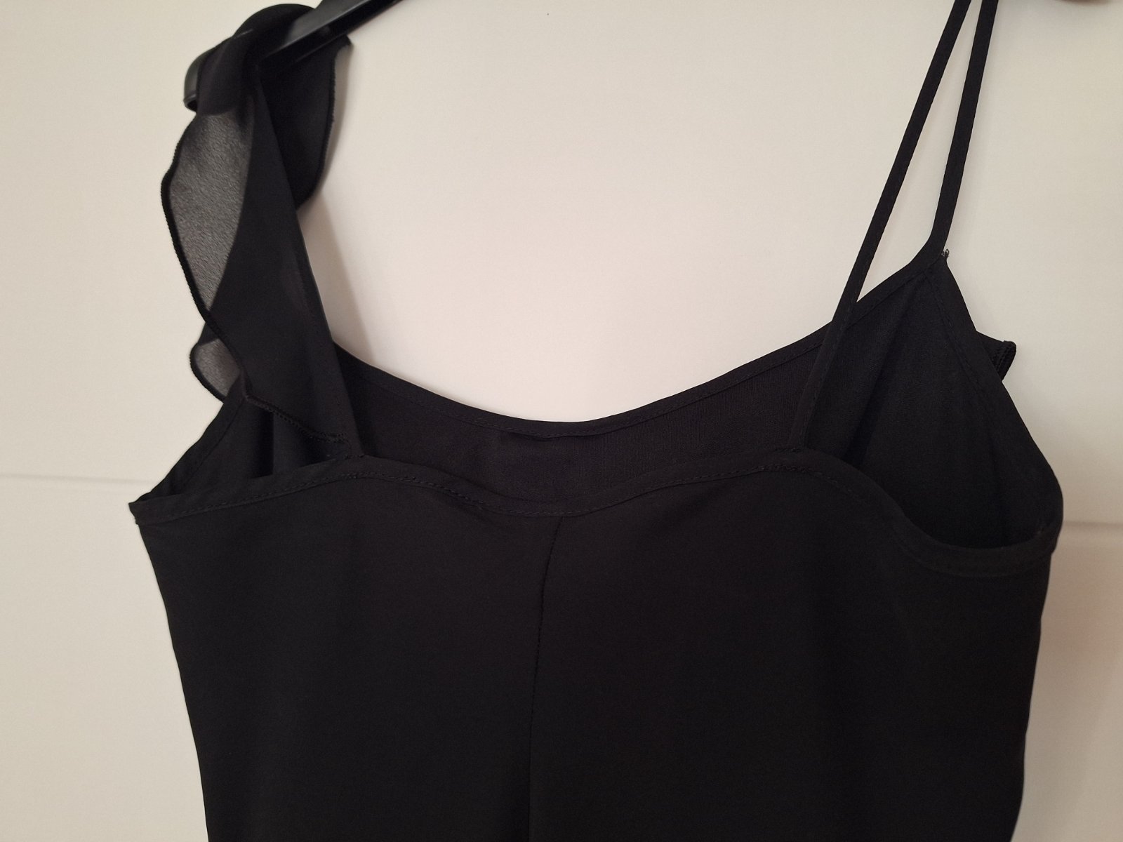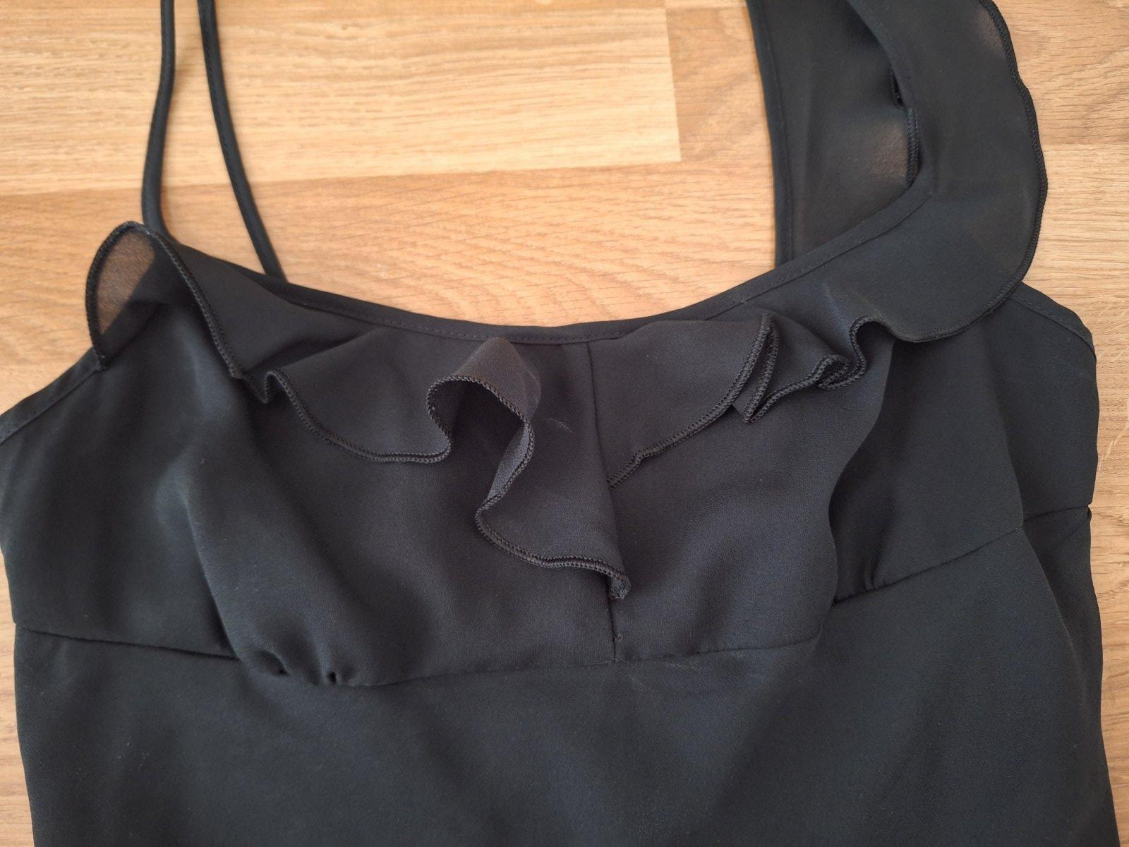 zaujímavé letné čierne šaty na posúvatelné ramienka, časť cez prsia a chrbát žabkovaný , prispôsobia sa každej postave, sukňa širokánska, strihaná do áčka, spodná časť ukončená do cípov.....celk. d...