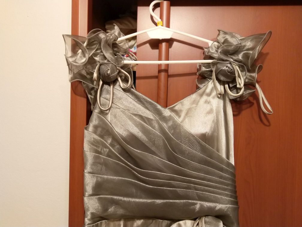 Luxusné lesklé strieborné spoločenské šaty na akúkoľvek slávnostnú príležitosť. Raz oblečené a zožali veľký úspech. Veľkosť 42/44 - sú veľmi prispôsobivé. Rozmery nafotené.