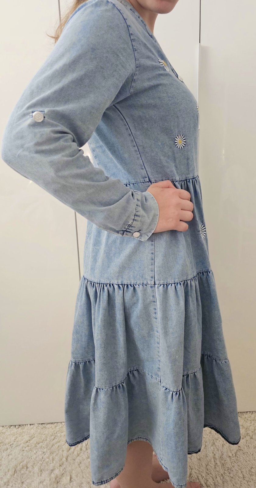 Riflové šaty s margarétkami