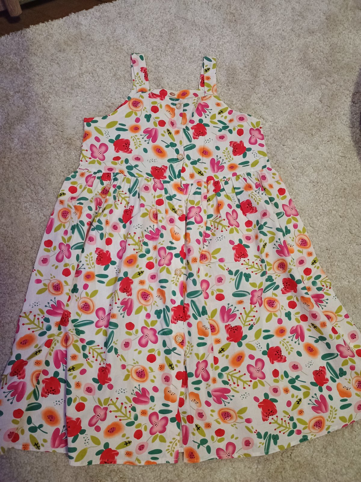 Bavlnená šatovka, vpredu na gombíky. Dajú sa nosiť samostatne aj s bielym tričkom pod tým. Raz oblečené.