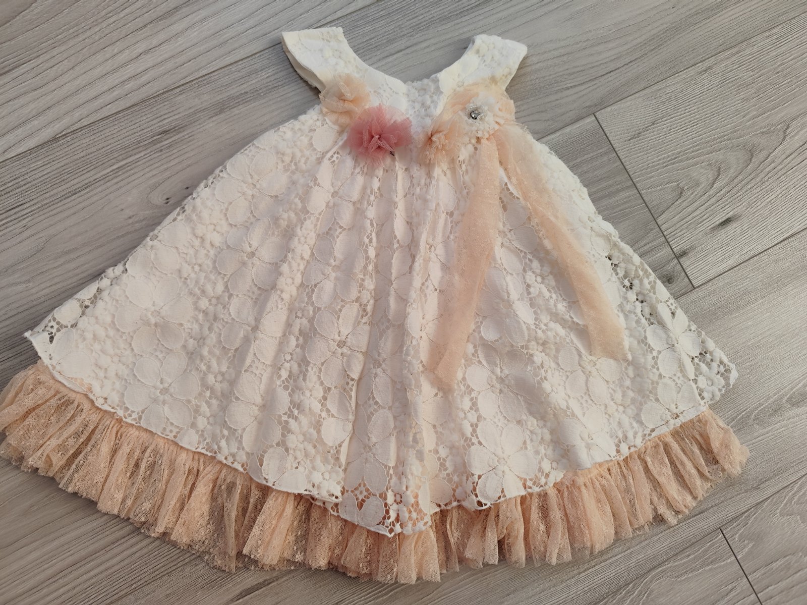 Slavnostne satocky z jemnej krajky Ackovy strih s 2 spodnickami, zapinanie vzadu na zips vel 80 zn NEONATO + bolerko a ciapocka z rovnakej krajky