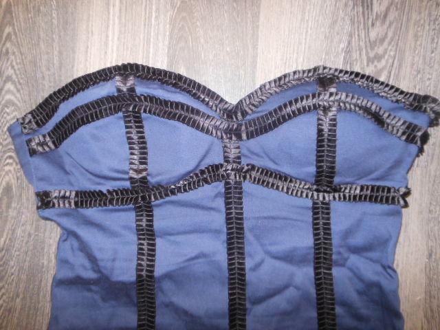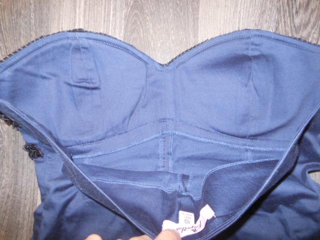 výborný stav,pružné,vystužená podprsenka,modro-čierne,veľkosť UK 10,EUR 38,š.45-49 cm,d.od podpazušia nadol 60,5 cm